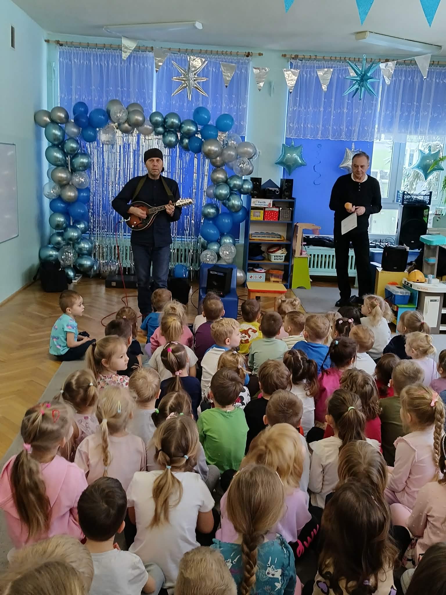 Tym razem Pan Witek przygotował dla przedszkolaków ostre brzmienie! Poznaliśmy gitarę elektryczną oraz dowiedzieliśmy się o niej kilku ciekawostek. Na zakończenie mogliśmy potańczyć do muzyki rokowej i trochę poszaleć.