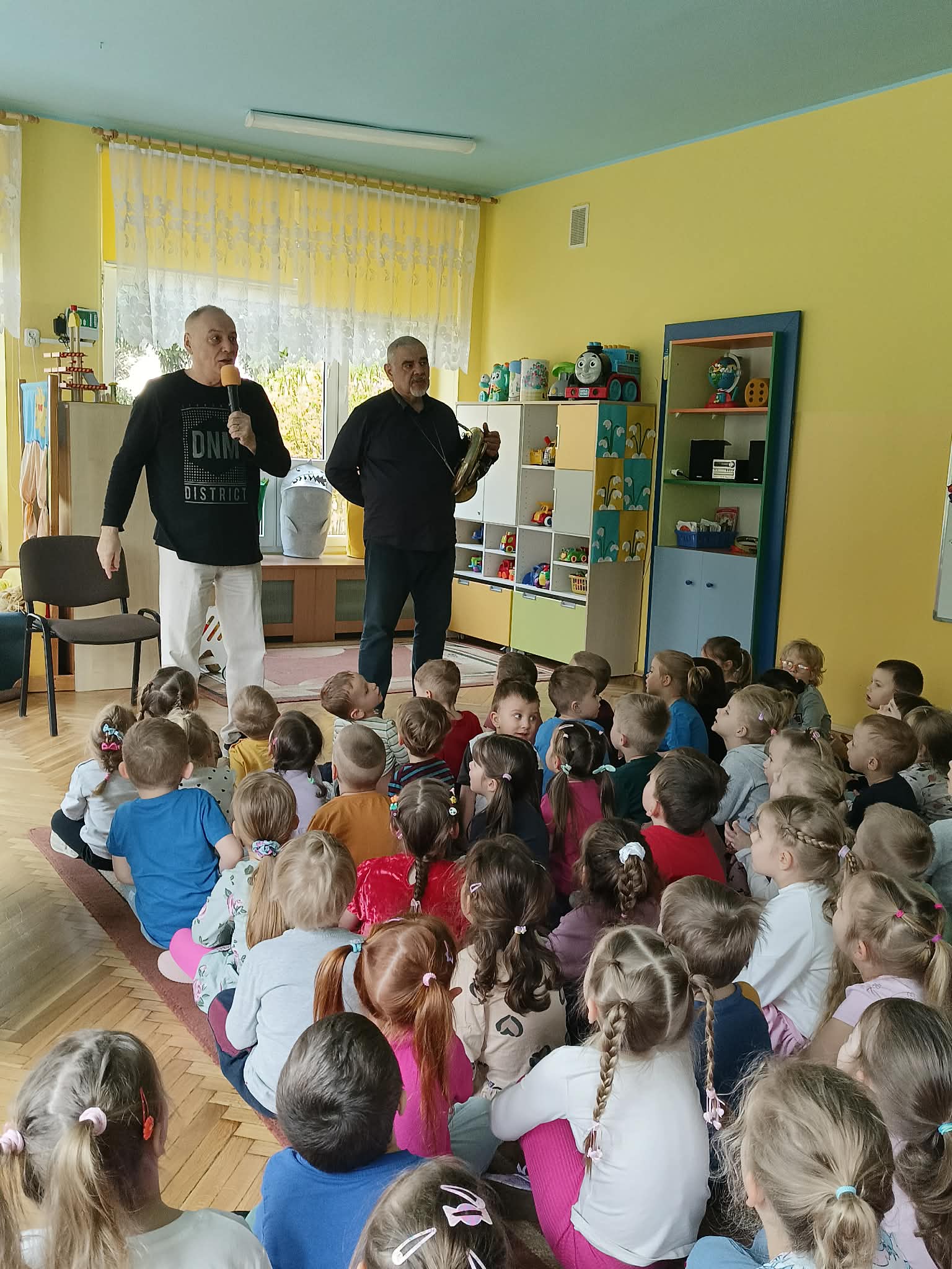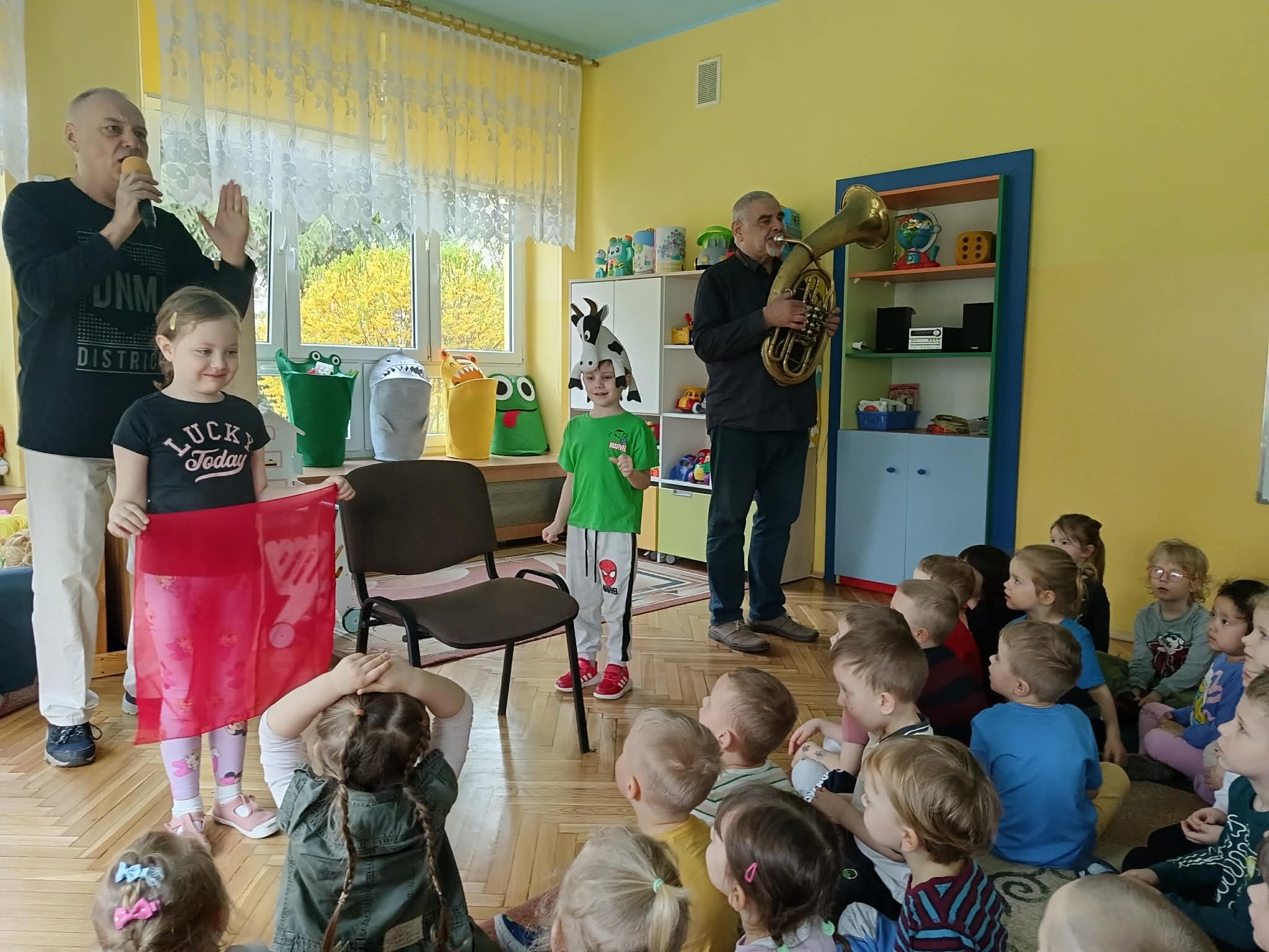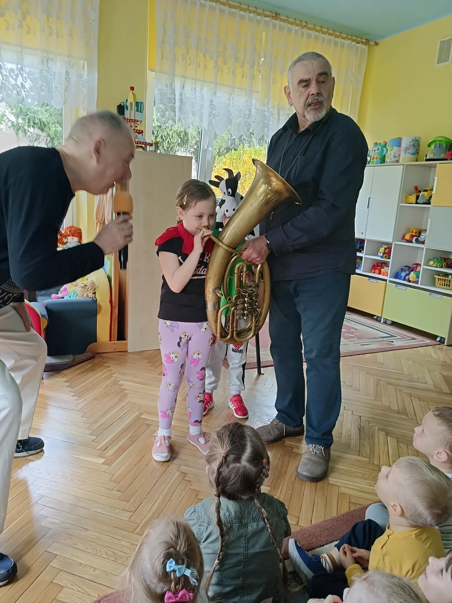 Pan Witek przybył do naszego przedszkola z kolejną audycją muzyczną, tym razem na warsztat wzięliśmy instrumenty dęte, tzw. byka. Wspólnie muzykowaliśmy, śpiewaliśmy, graliśmy, a także zamieniliśmy się w toreadorów. Dziękujemy za świetną zabawę.