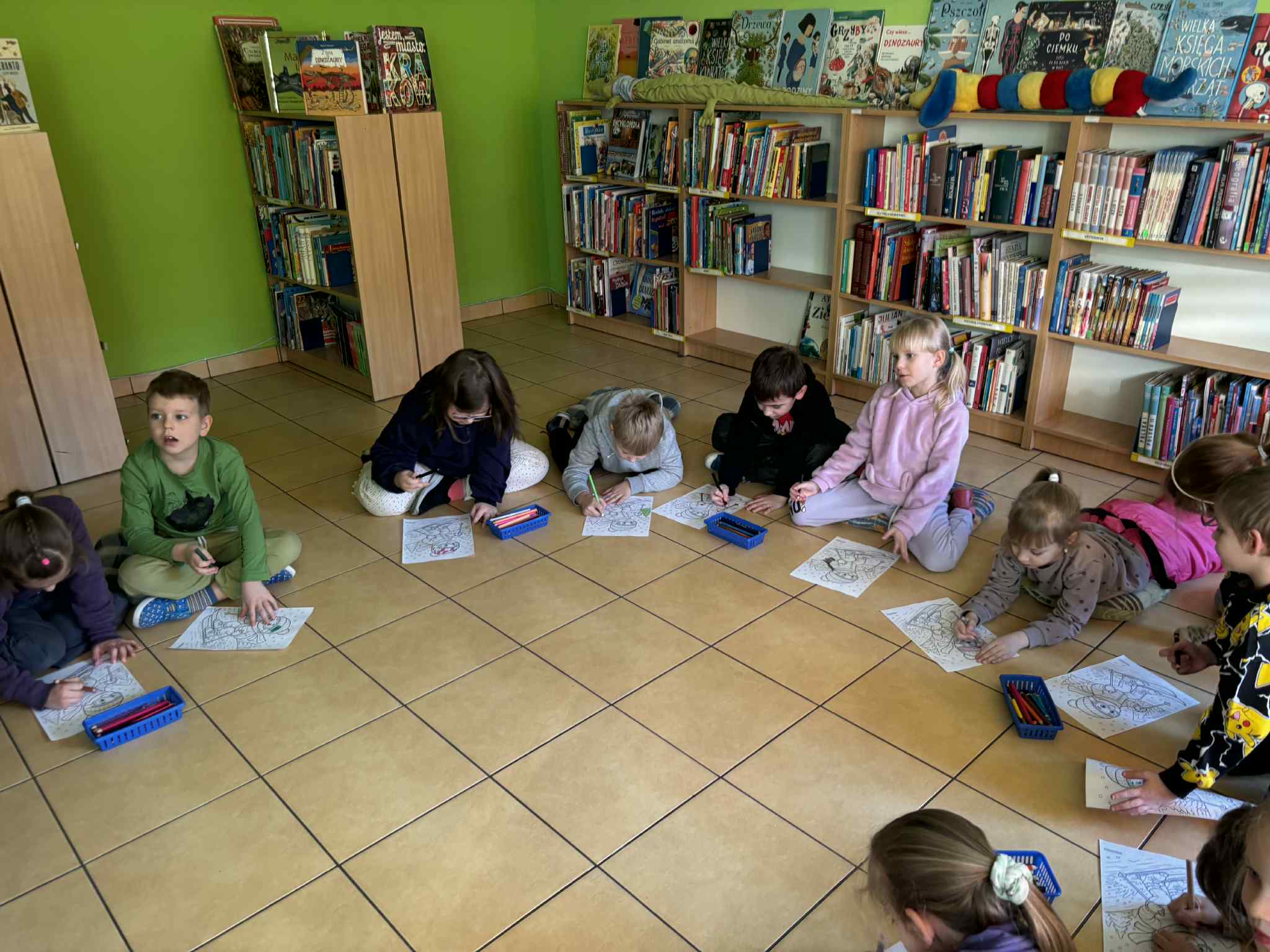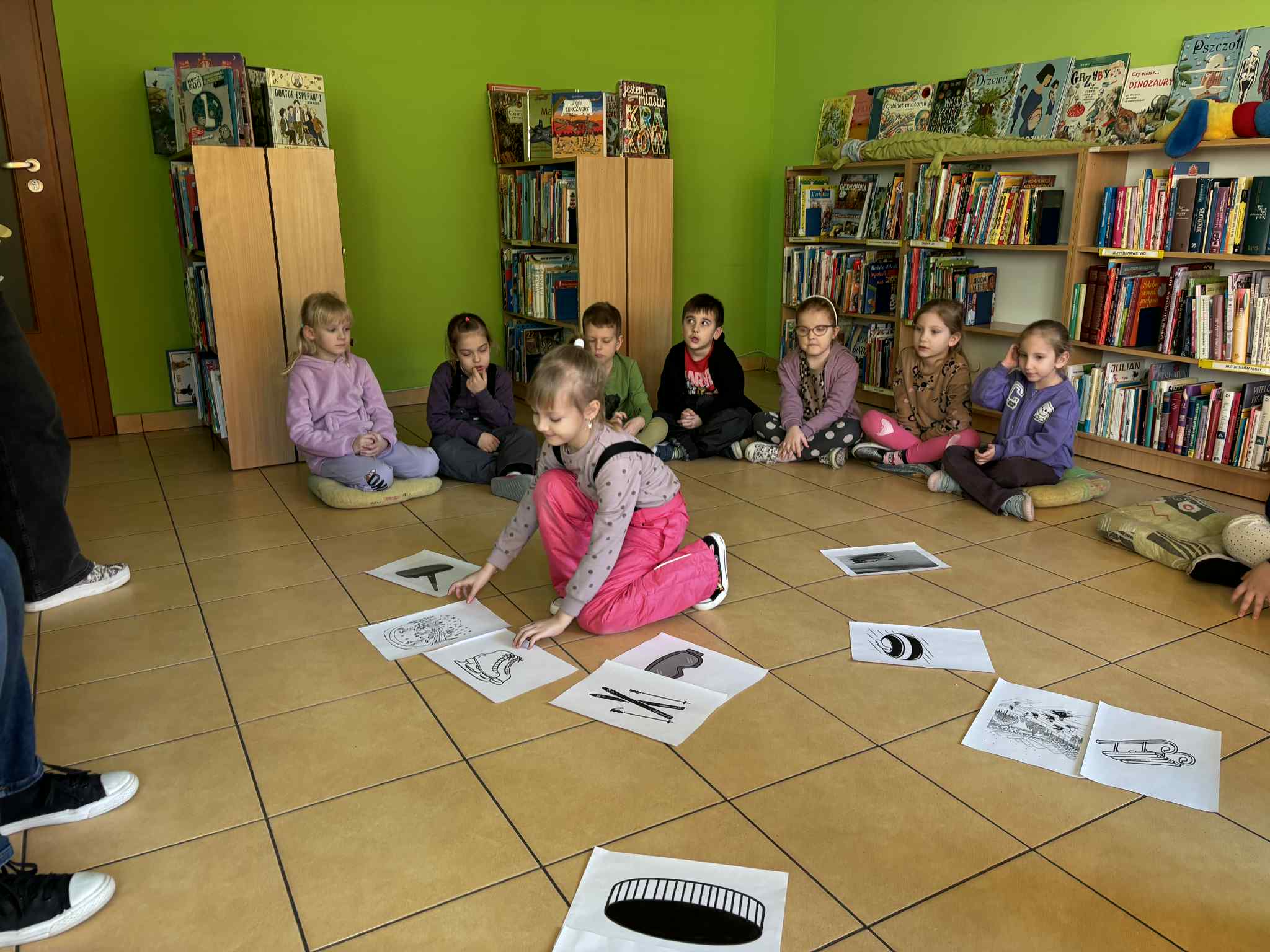 19 stycznia dzieci z grupy srebrnej uczestniczyły w zajęciach czytelniczych w Bibliotece nr 61. Dzieci słuchały książki o zimie i sportach zimowych a następnie dopasowywały obrazki przedstawiające sporty zimowe, rozwiązywały zagadki, bawiły się w kalambury i kolorowały zimowe obrazki.