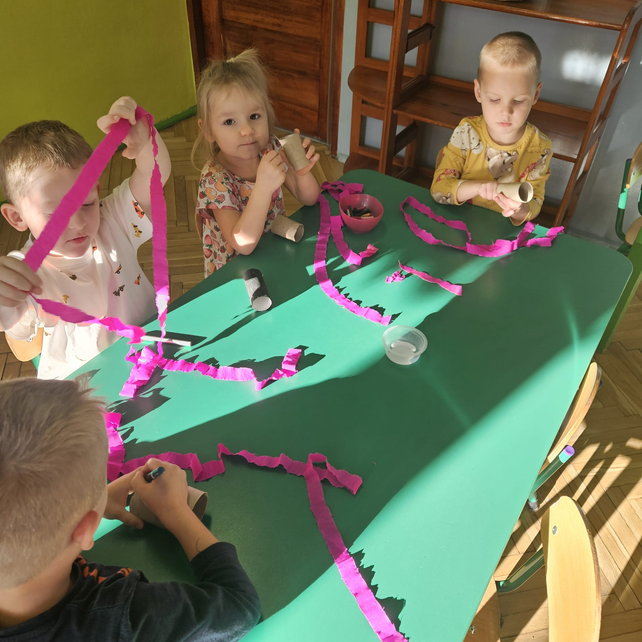 W środę w naszym przedszkolu dzieci rozwijały swoją kreatywność i wyobraźnię tworząc własne zabawki z materiałów codziennego użytku i odzysku. Do dobrej zabawy potrzebna była wyłącznie wyobraźnia.