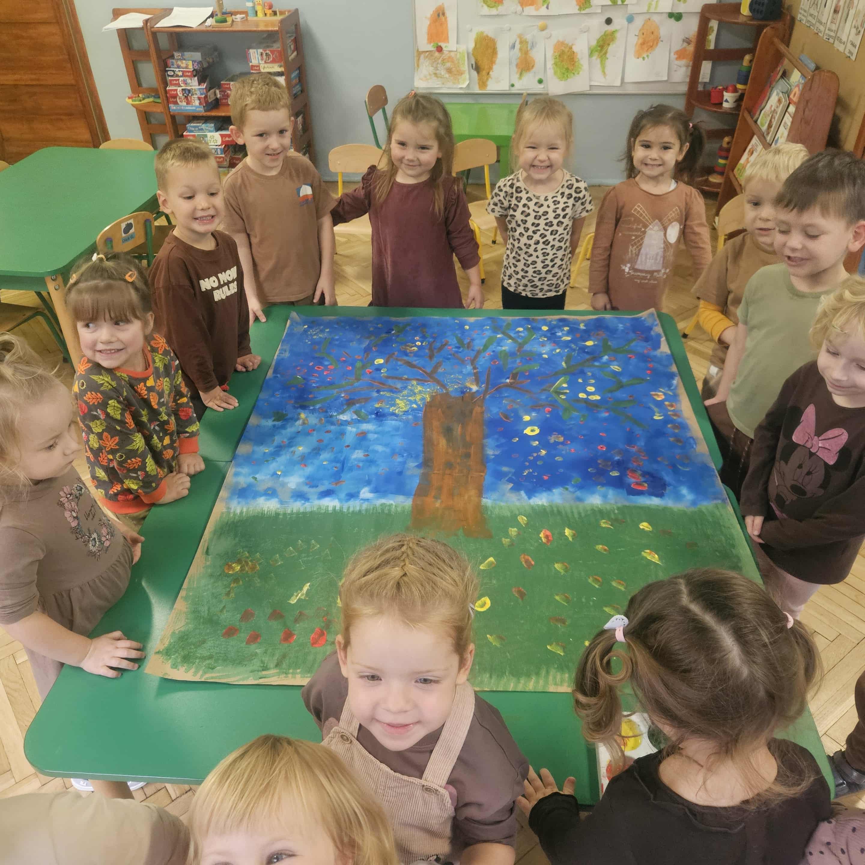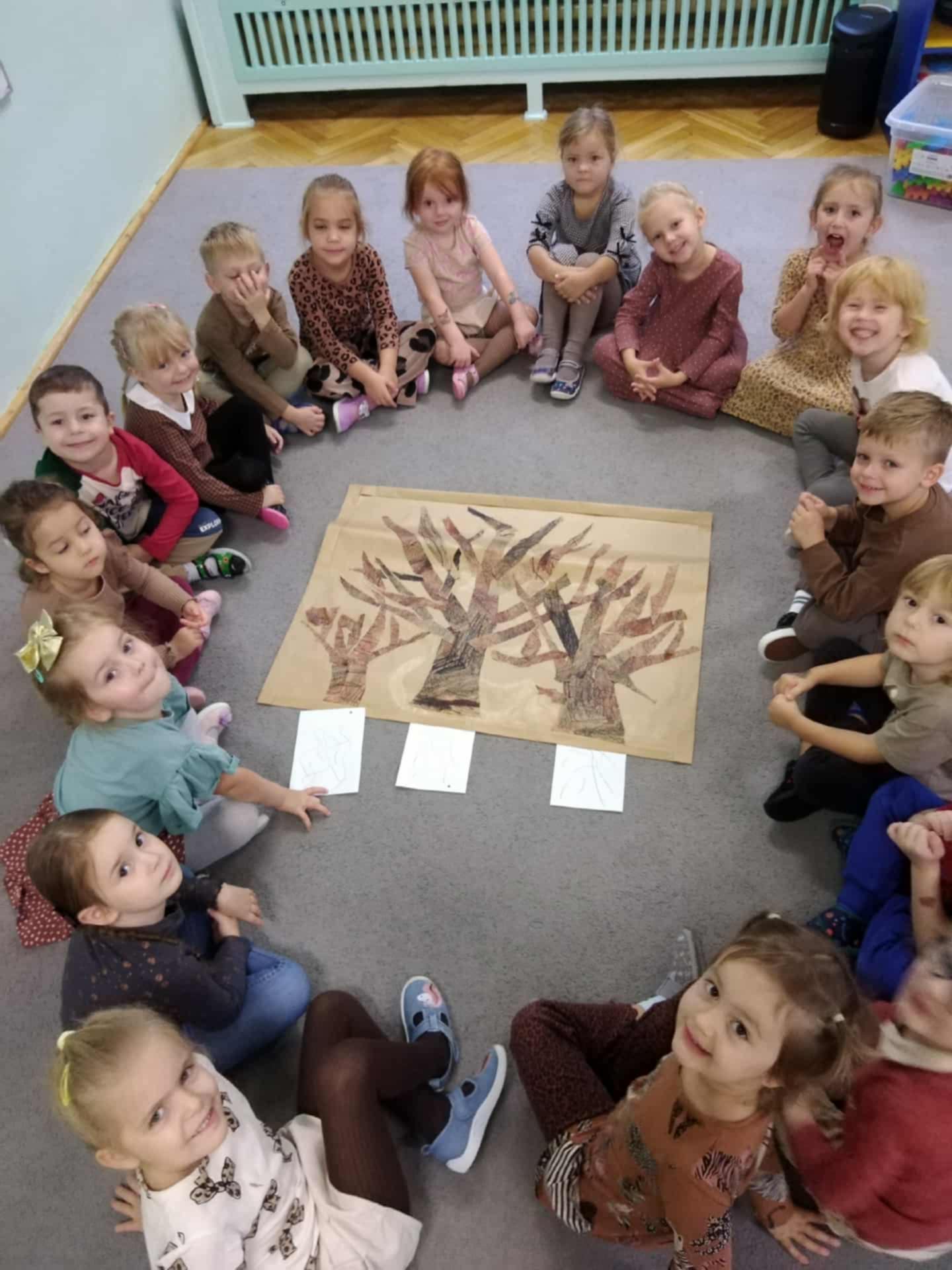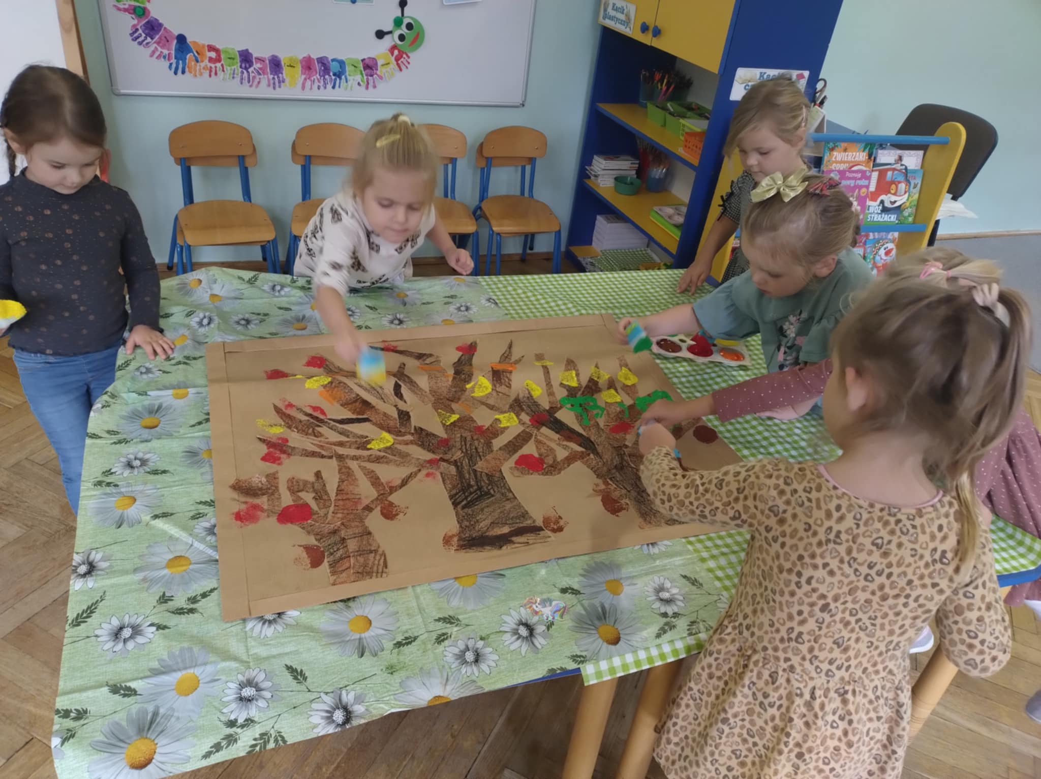 10 października w naszym przedszkolu obchodziliśmy Dzień Drzewa. To ważne święto przypomina nam o znaczeniu drzew dla życia ludzi, zwierząt, przyrody i dla całej naszej planety. W tym dniu odbyły się zajęcia związane z tematyką drzew. Dzieci poznały ich budowę, etapy wzrastania drzewa oraz zmienności wyglądu podczas pór roku. W czasie zabaw badawczych dzieci dotykały liści rożnych drzew oraz ich owoców. Obchody Dnia Drzewa były wspaniałą okazją do wykonania przepięknych prac plastycznych.