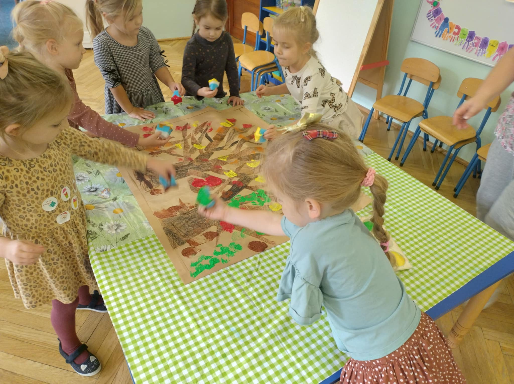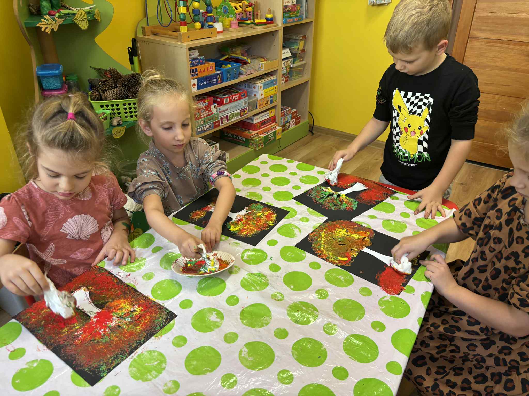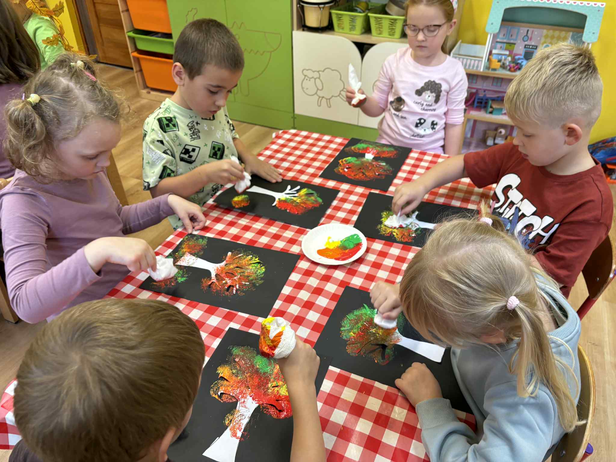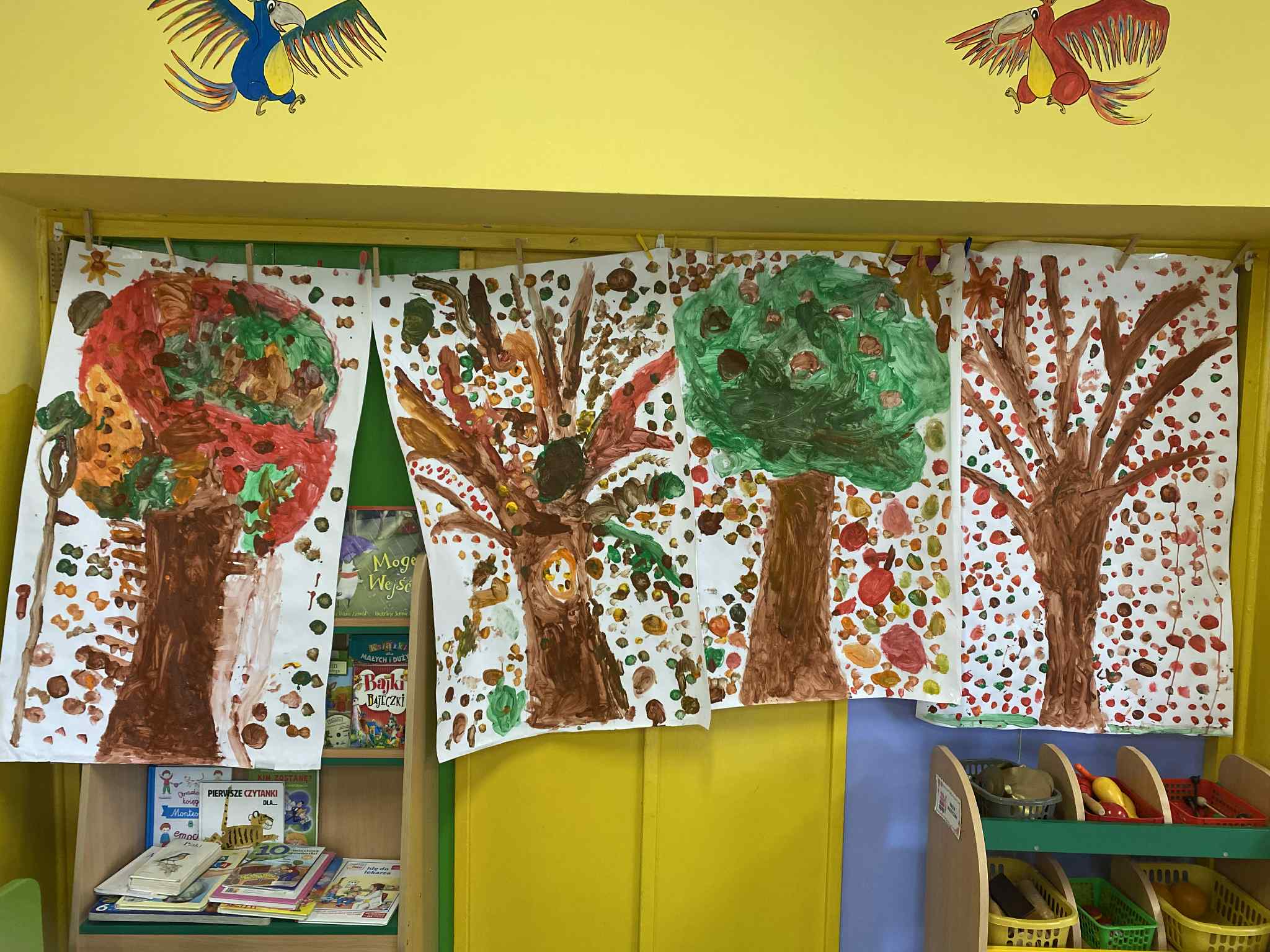 10 października w naszym przedszkolu obchodziliśmy Dzień Drzewa. To ważne święto przypomina nam o znaczeniu drzew dla życia ludzi, zwierząt, przyrody i dla całej naszej planety. W tym dniu odbyły się zajęcia związane z tematyką drzew. Dzieci poznały ich budowę, etapy wzrastania drzewa oraz zmienności wyglądu podczas pór roku. W czasie zabaw badawczych dzieci dotykały liści rożnych drzew oraz ich owoców. Obchody Dnia Drzewa były wspaniałą okazją do wykonania przepięknych prac plastycznych.