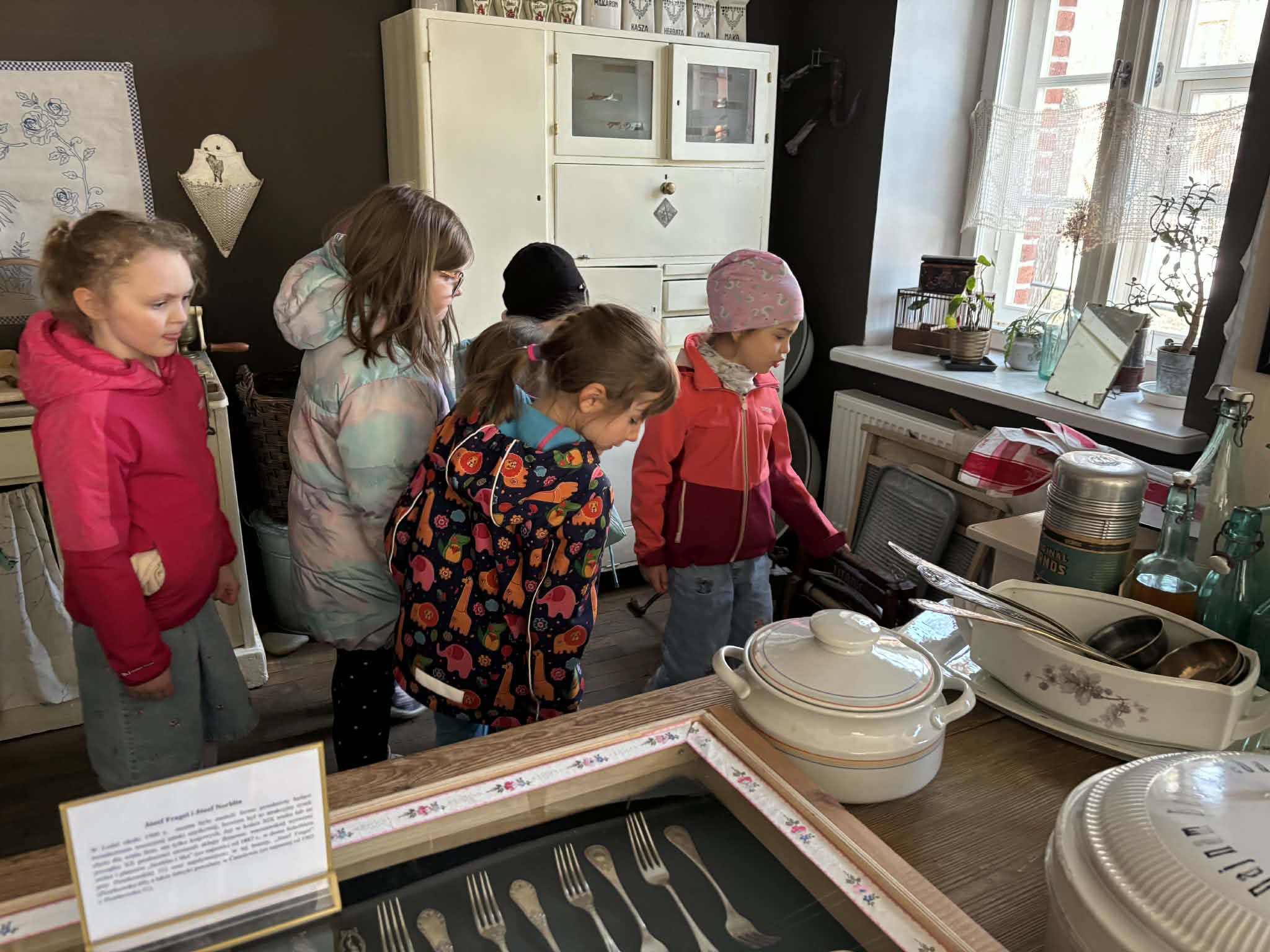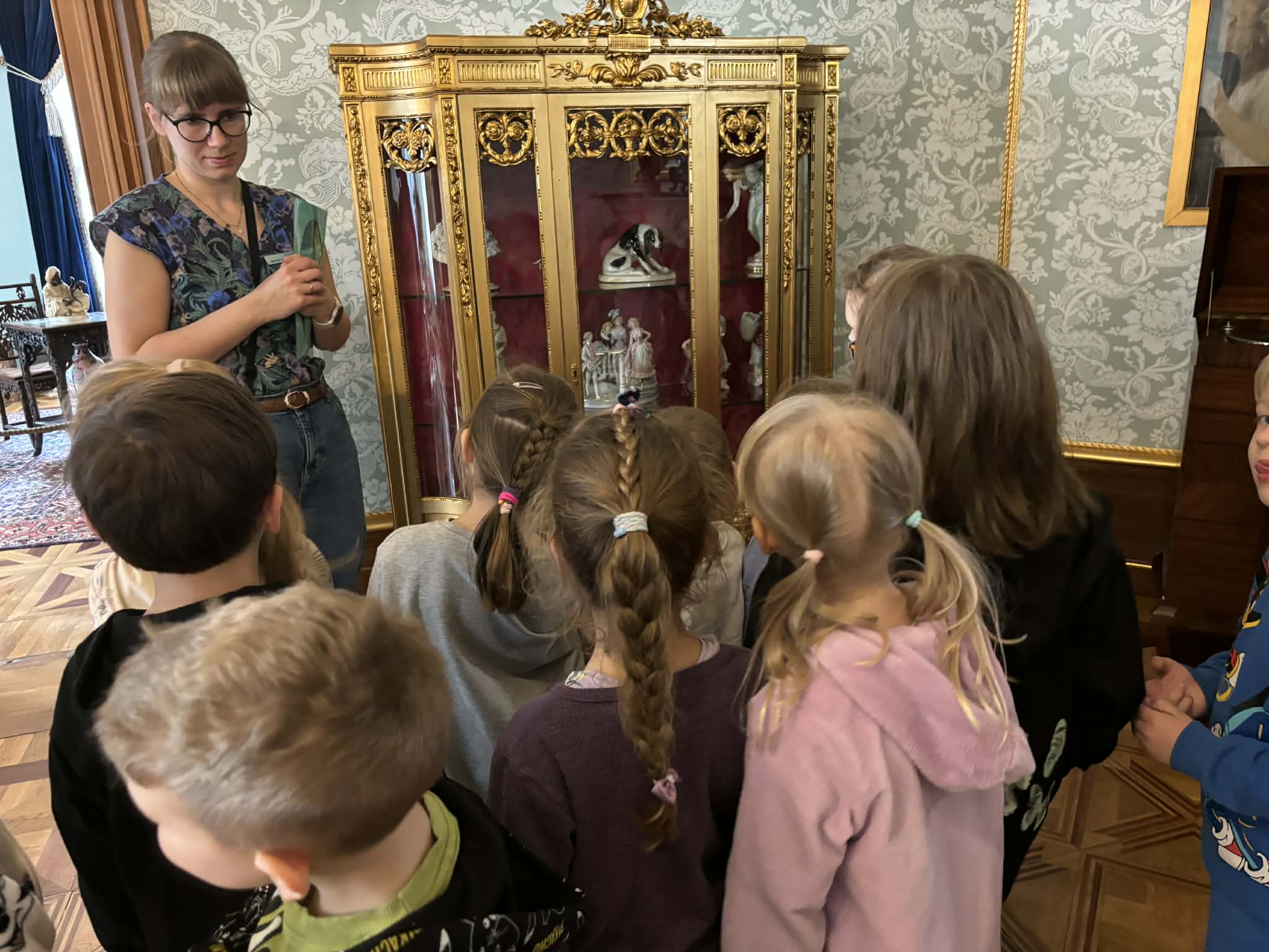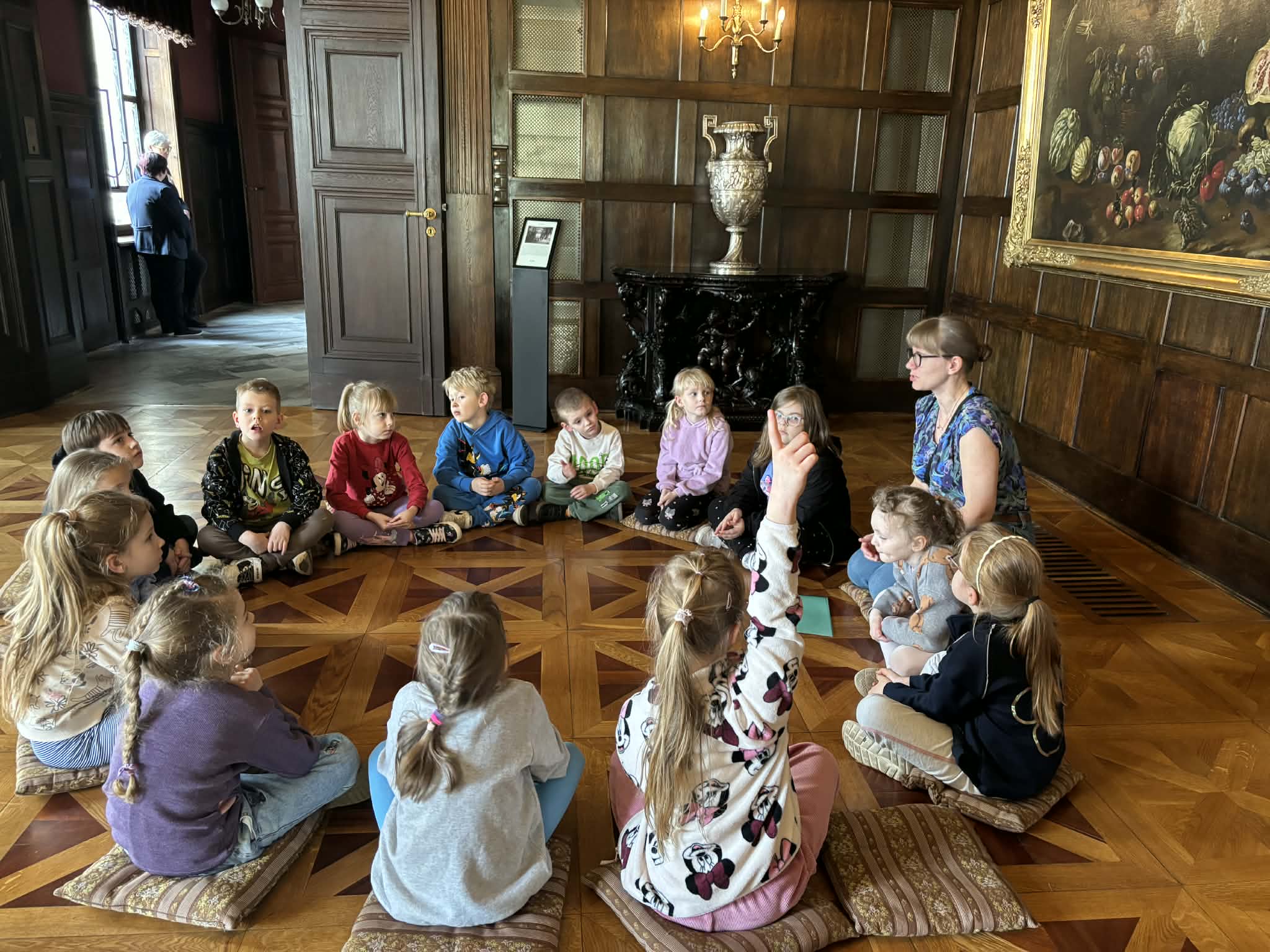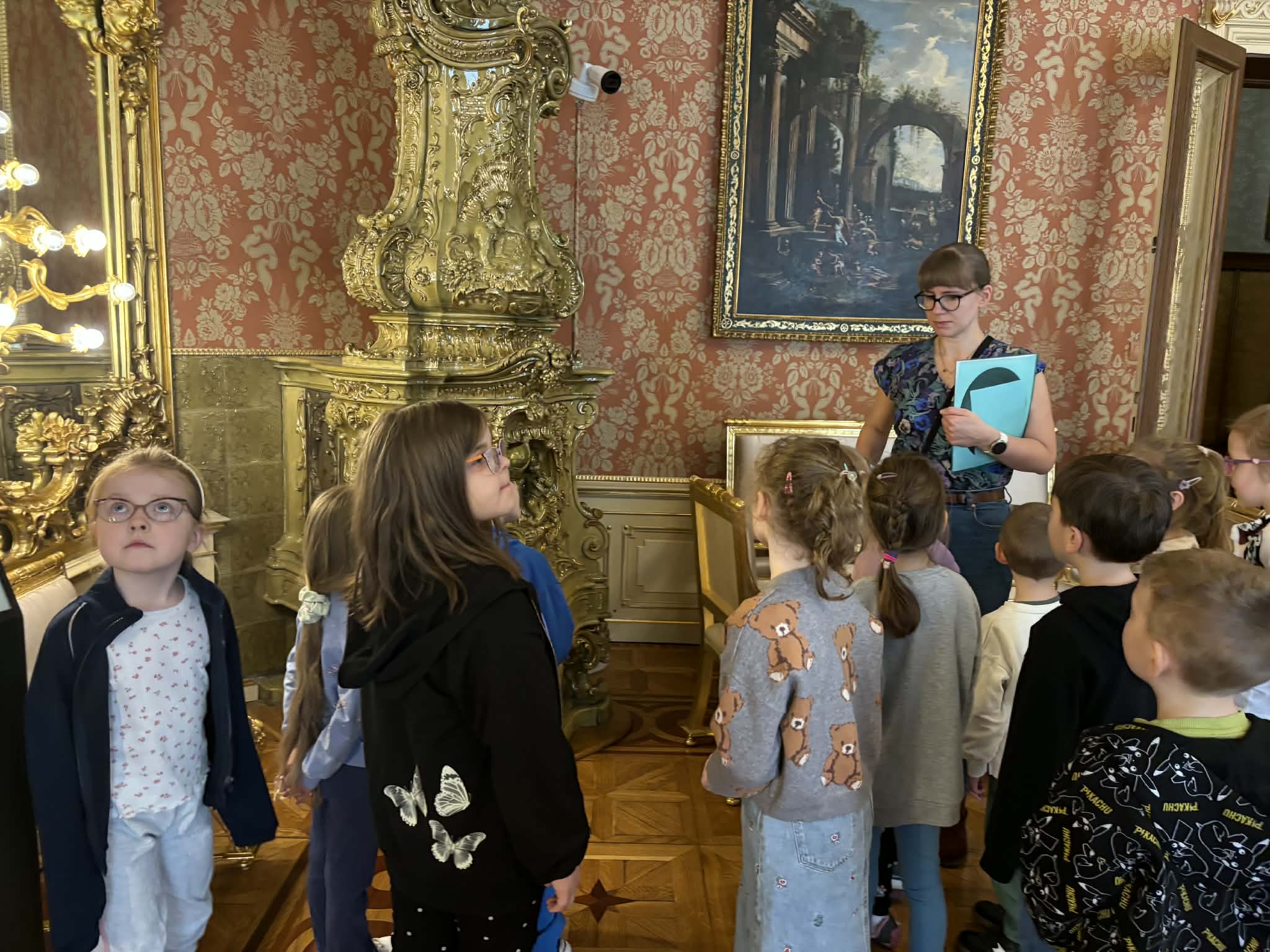 11 marca dzieci z grupy srebrnej wybrały się na wycieczkę do Muzeum Pałac Herbsta, gdzie uczestniczyły w warsztatach „Pałacowa menażeria”’ podczas których łączyły zwiedzanie historycznych wnętrz pałacowych z twórczością plastyczną. Postacie zwierząt, których dzieci szukały w pomieszczeniach były przewodnikami po pałacu i opowiadały o życiu jakie toczyło się 150 lat temu oraz odkrywały świat sztuki. A na zakończenie wykonały zwierzaki techniką origami. Korzystając ze słonecznej pogody przeszliśmy się brukowanymi uliczkami oglądając domy robotnicze, dawną przędzalnię Karola Scheiblera (obecnie lofty) oraz Muzeum Księży Młyn, gdzie mogliśmy zobaczyć przedmioty codziennego użytku mieszkańców Łodzi z epoki przemysłowej. Przeżycia i emocje, które towarzyszyły dzieciom podczas wycieczki dostarczyły im wielu niezapomnianych przeżyć.