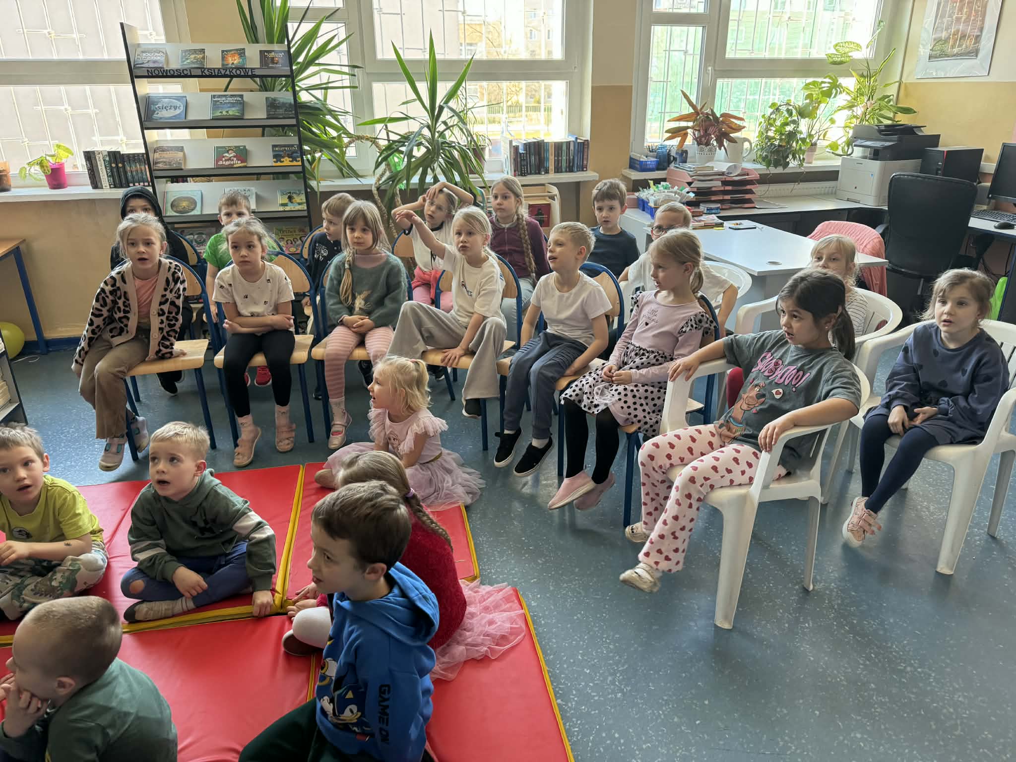 4 marca dzieci z grupy srebrnej i czerwonej brały udział w warsztatach w Szkole Podstawowej nr 189. Poznawały one szkołę poprzez udział w lekcji języka angielskiego, w zajęciach z edukacji wczesnoszkolnej, zabawach sportowych, plastycznych oraz zajęciach bibliotecznych. Przedszkolaki miały okazję usiąść w „szkolnych ławkach” i poczuć się jak prawdziwi uczniowie. Dzieci wróciły do przedszkola pełne wrażeń, z poczuciem, że szkoła jest przyjaznym miejscem.