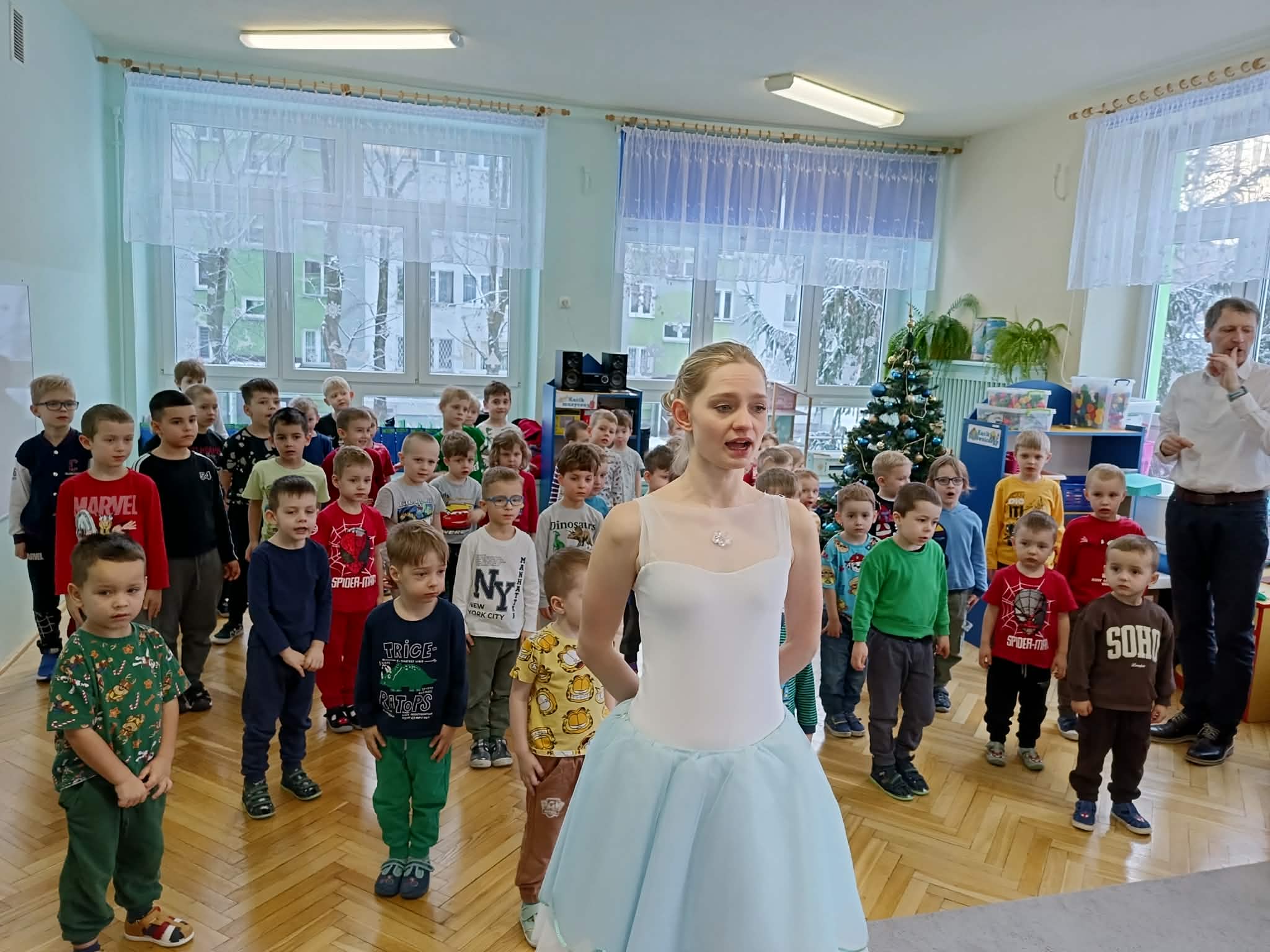 8 stycznia mogliśmy podziwiać balet. Zarówno piękne stroje, rekwizyty, muzyka oraz taniec wywarło duże uznanie wśród naszych małych odbiorców. Dziękujemy bardzo za ciekawą lekcję.