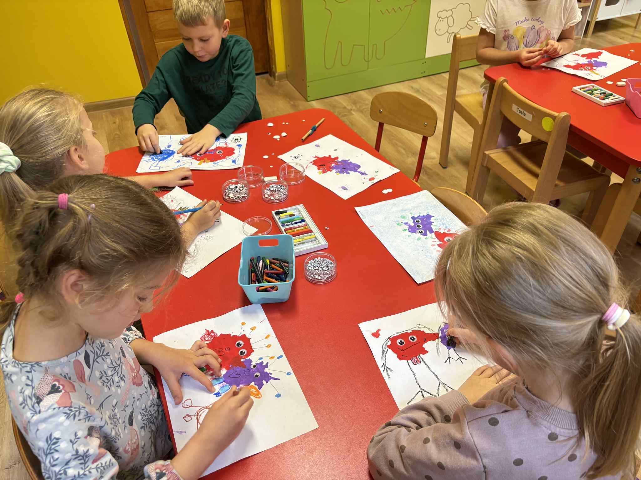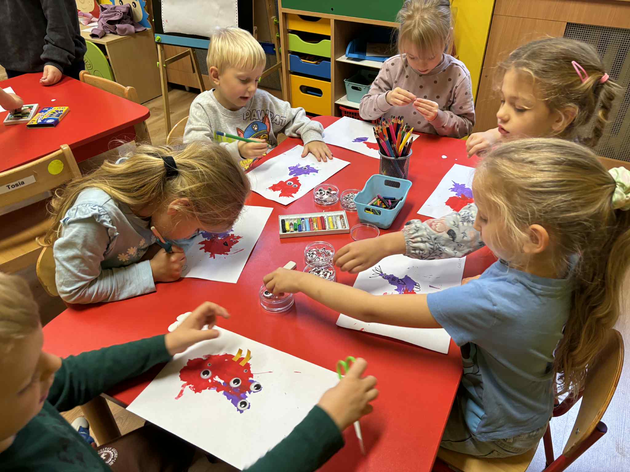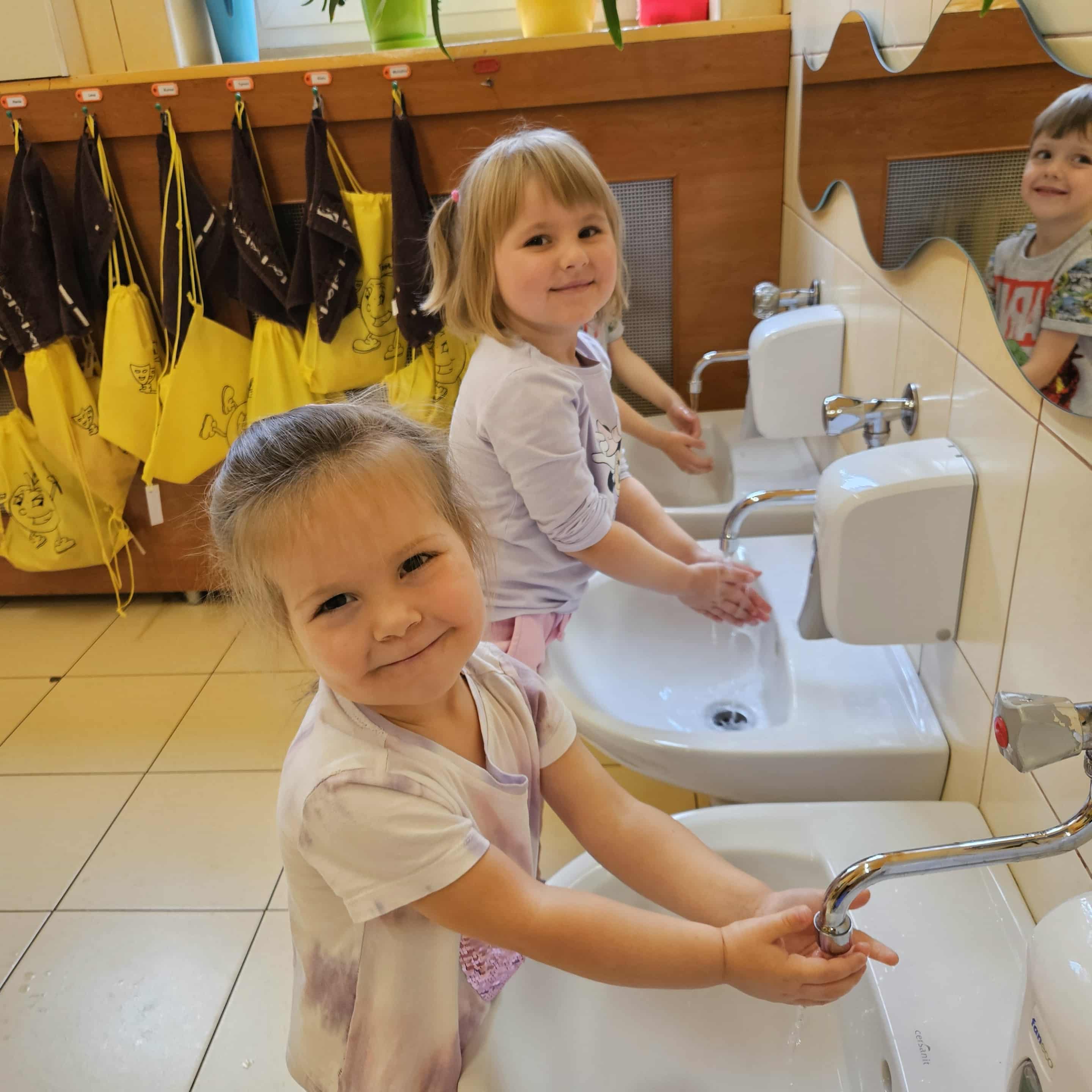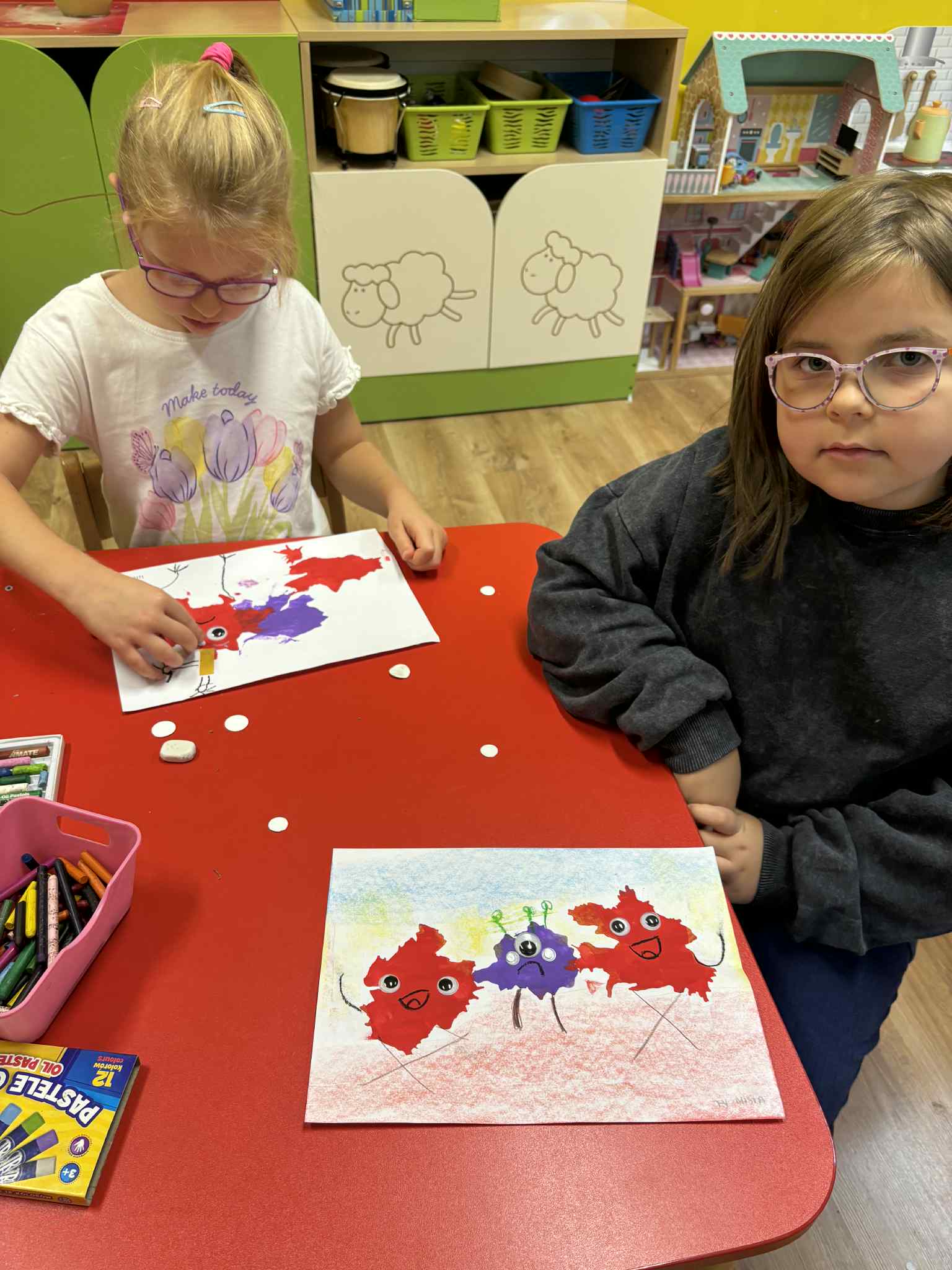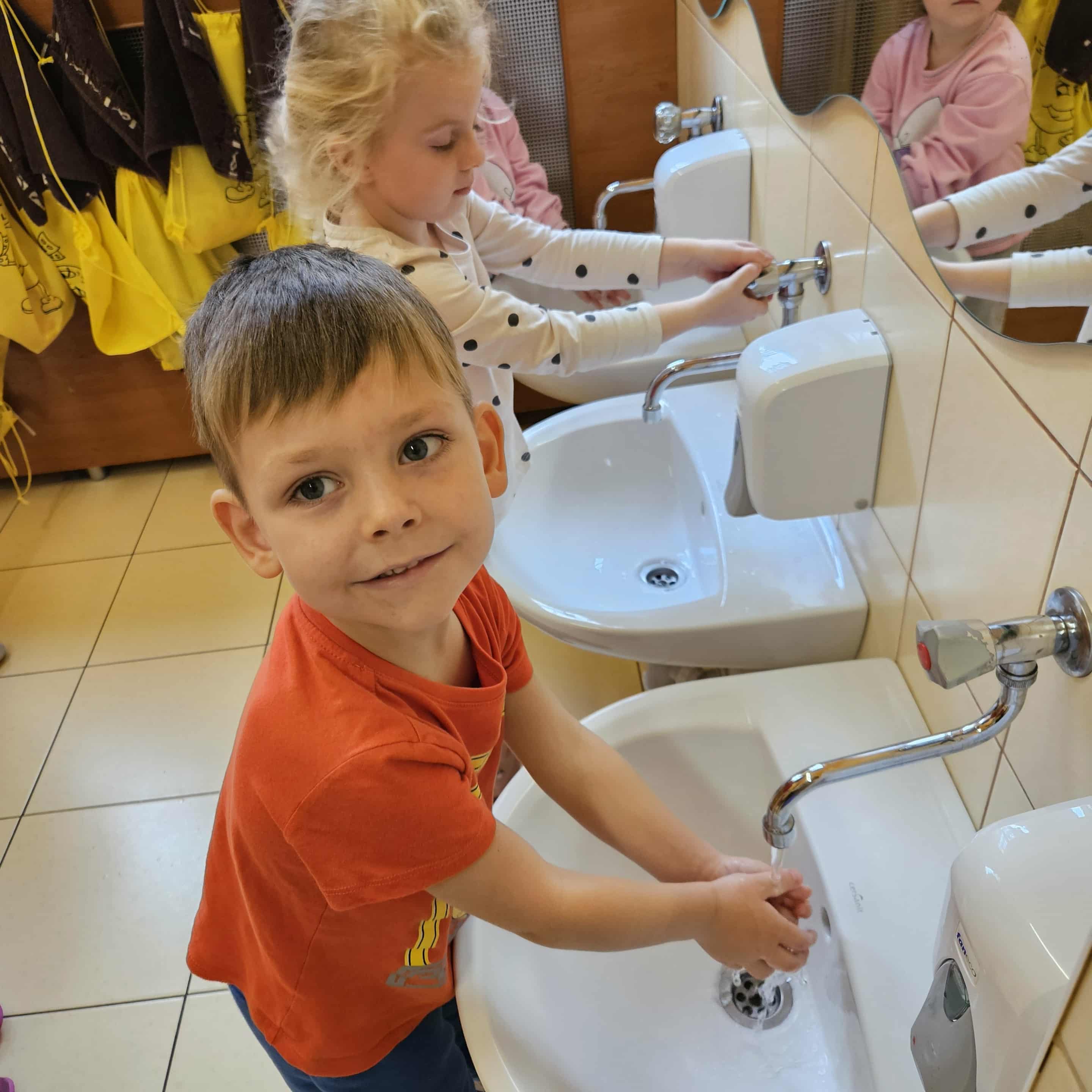 15 października obchodziliśmy w przedszkolu Światowy Dzień Mycia Rąk. Dzieci oglądały film edukacyjny „Dbamy o zdrowie”, rozwiązywały zagadki o środkach czystości, uczestniczyły w zabawach badawczych związanych ze znaczeniem czystości rąk oraz wykonywały prace plastyczne „Bakterie i wirusy”.
