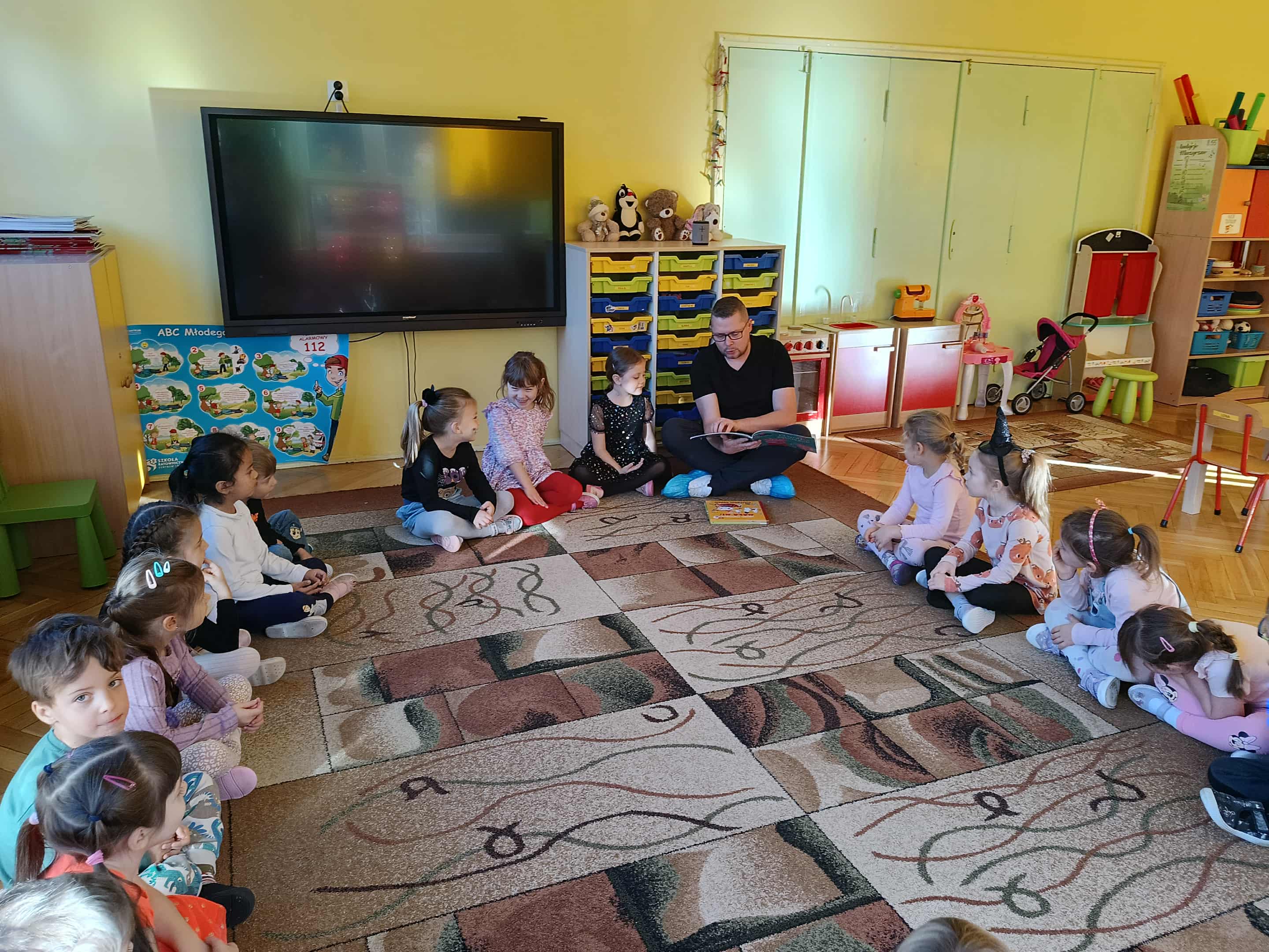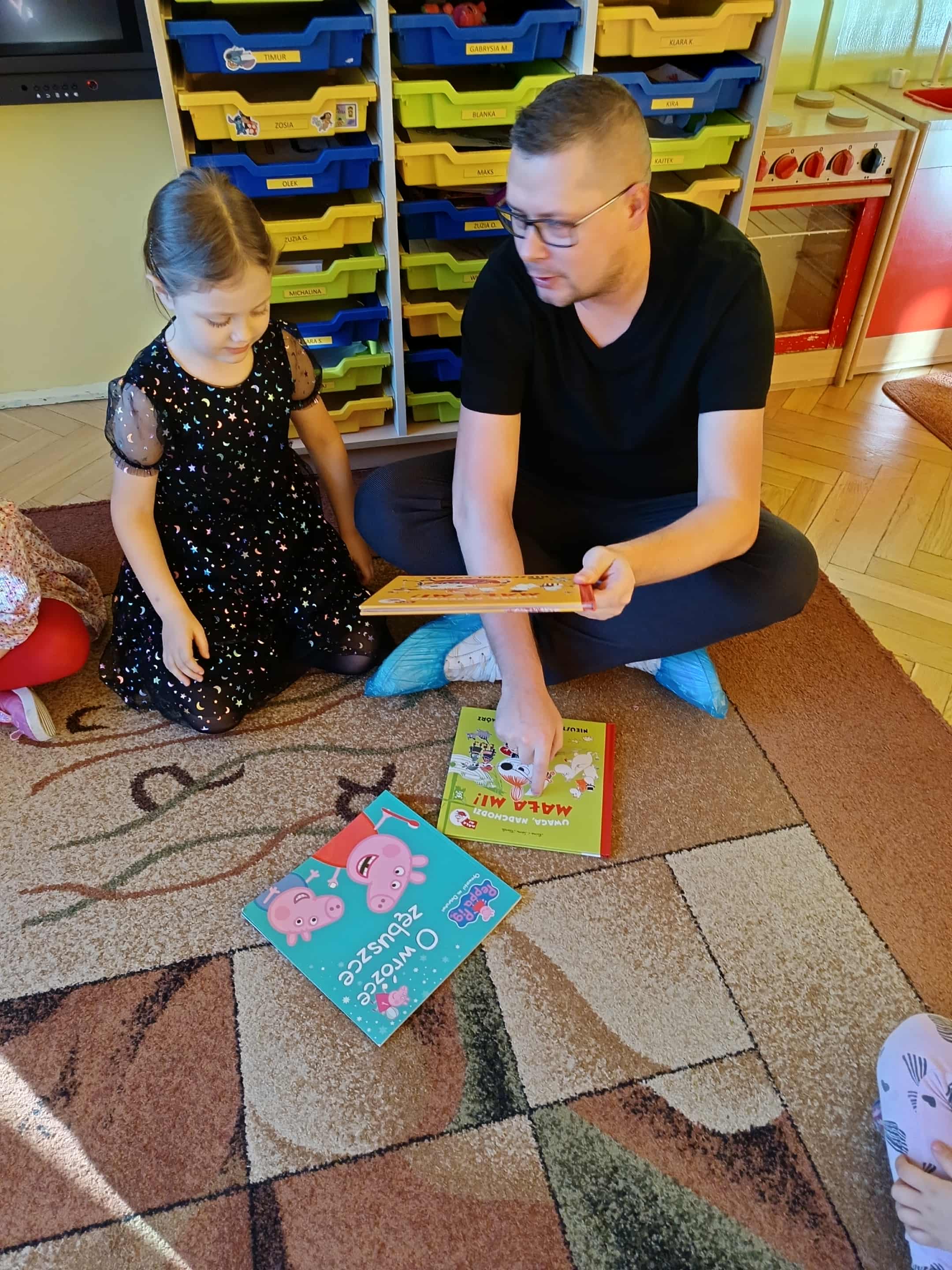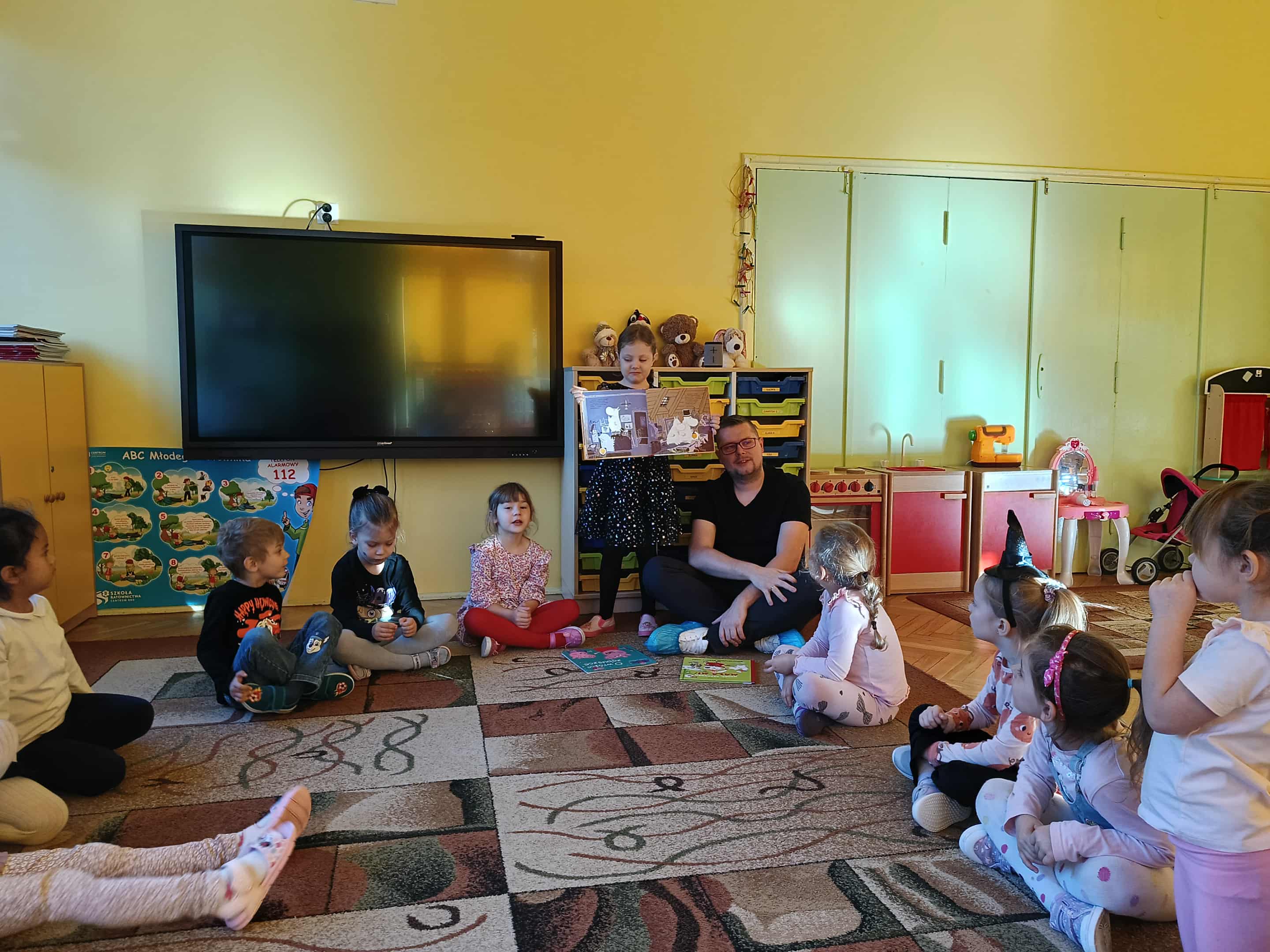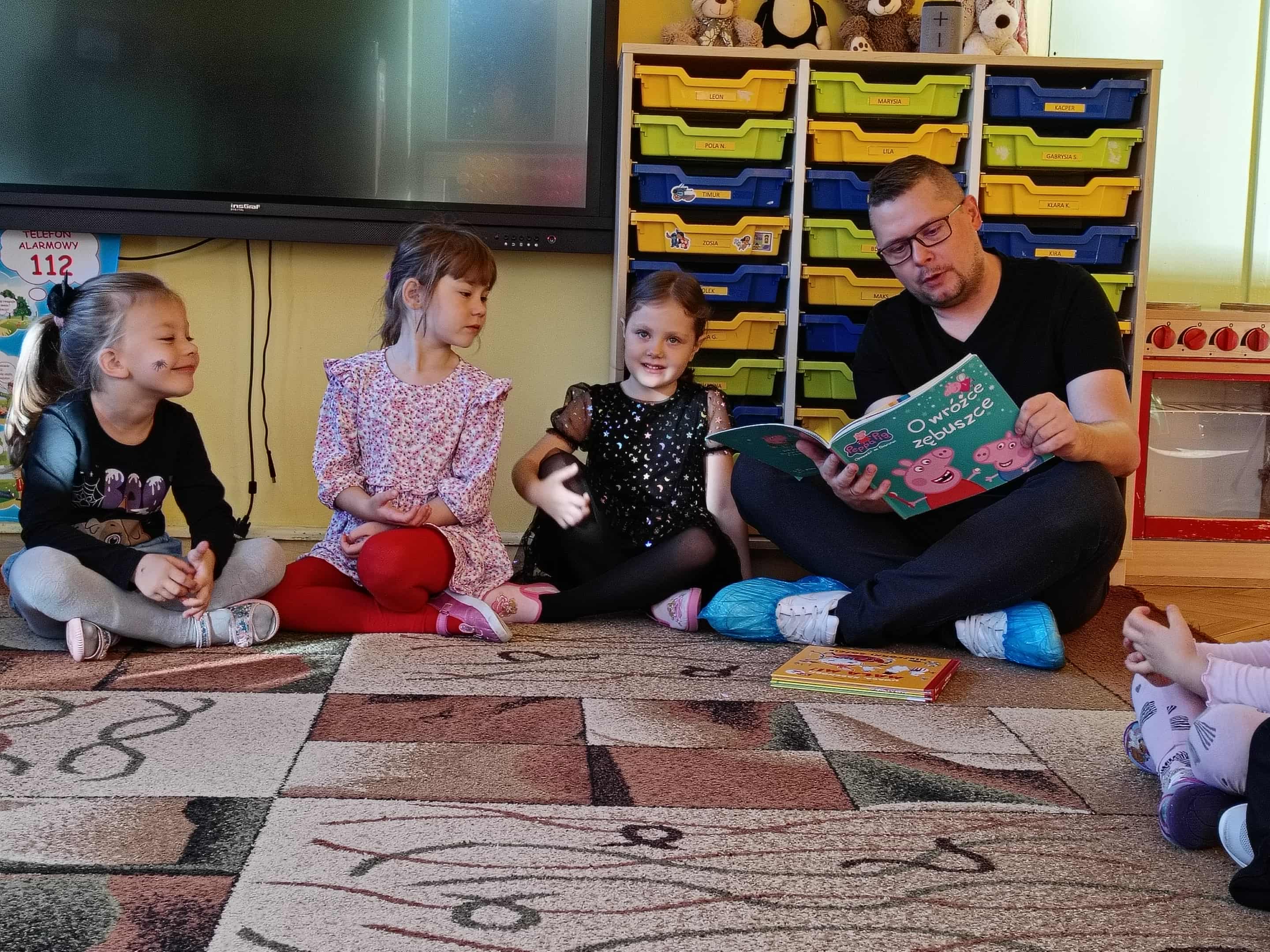 31 października w grupie żółtej gościł tata Michalinki w ramach akcji „Tata też czyta”, który przeczytał dzieciom książki z serii Muminki oraz Świnka Pepa. Bardzo dziękujemy za dołączenie do akcji oraz upominki dla nas wszystkich :)