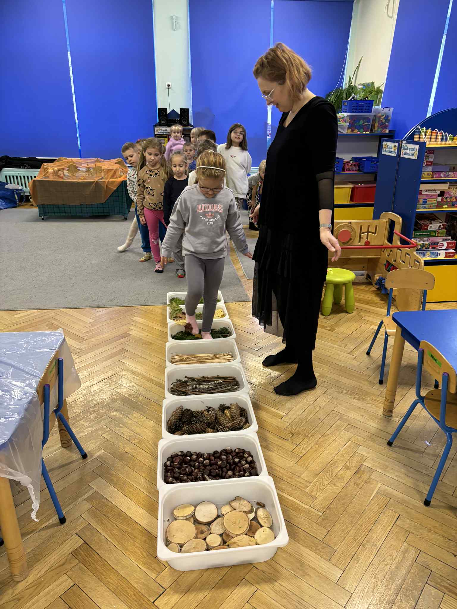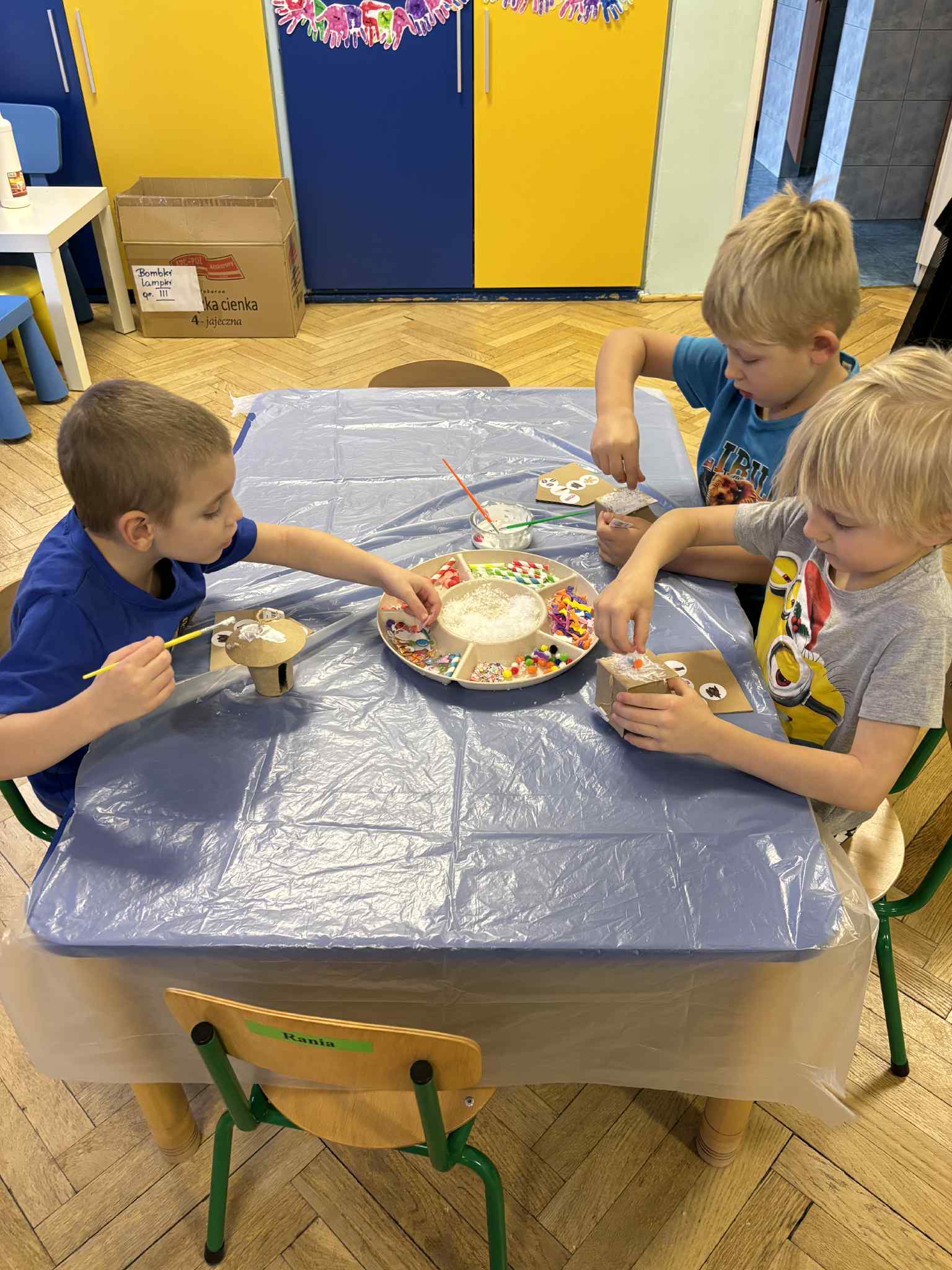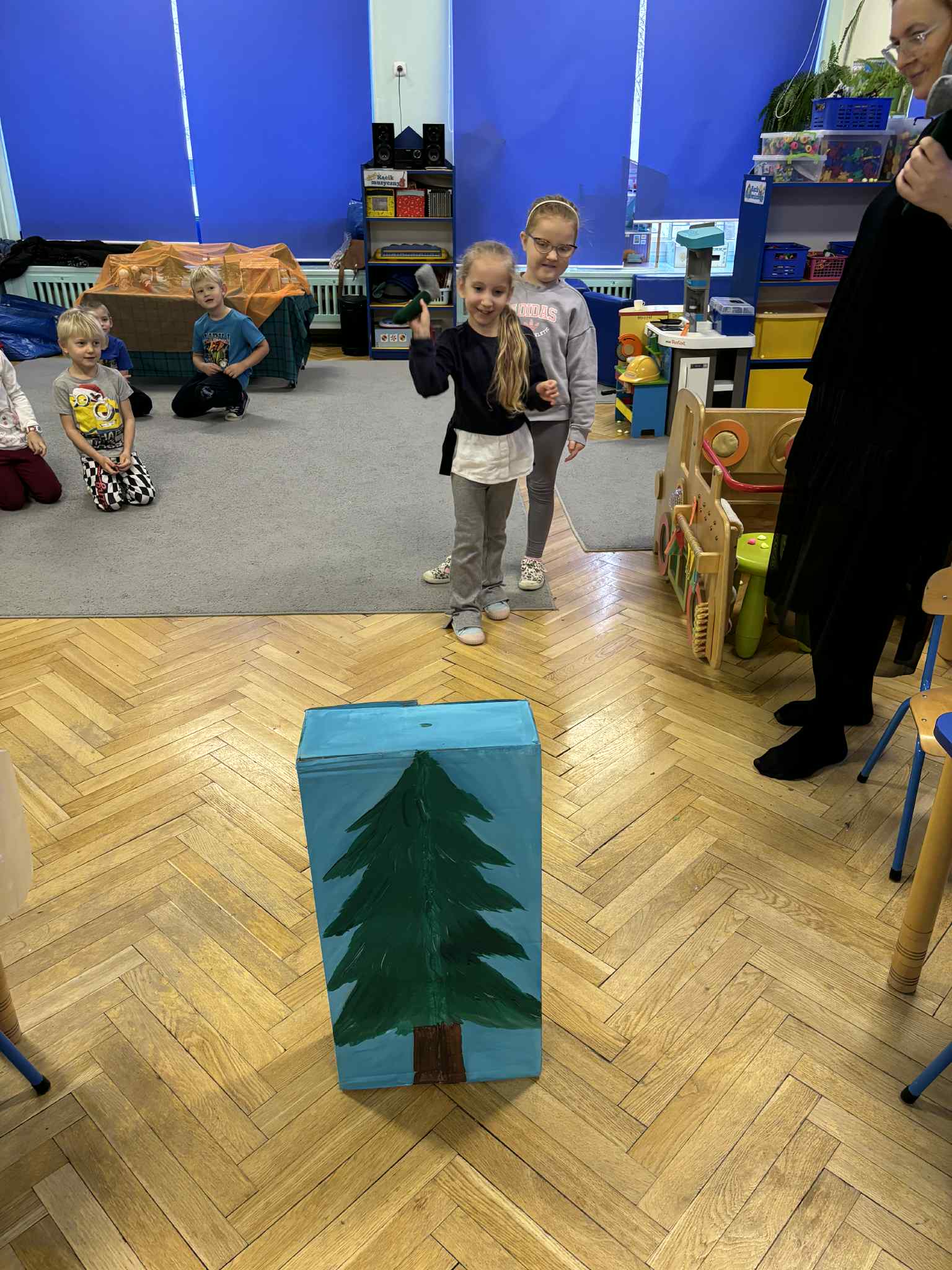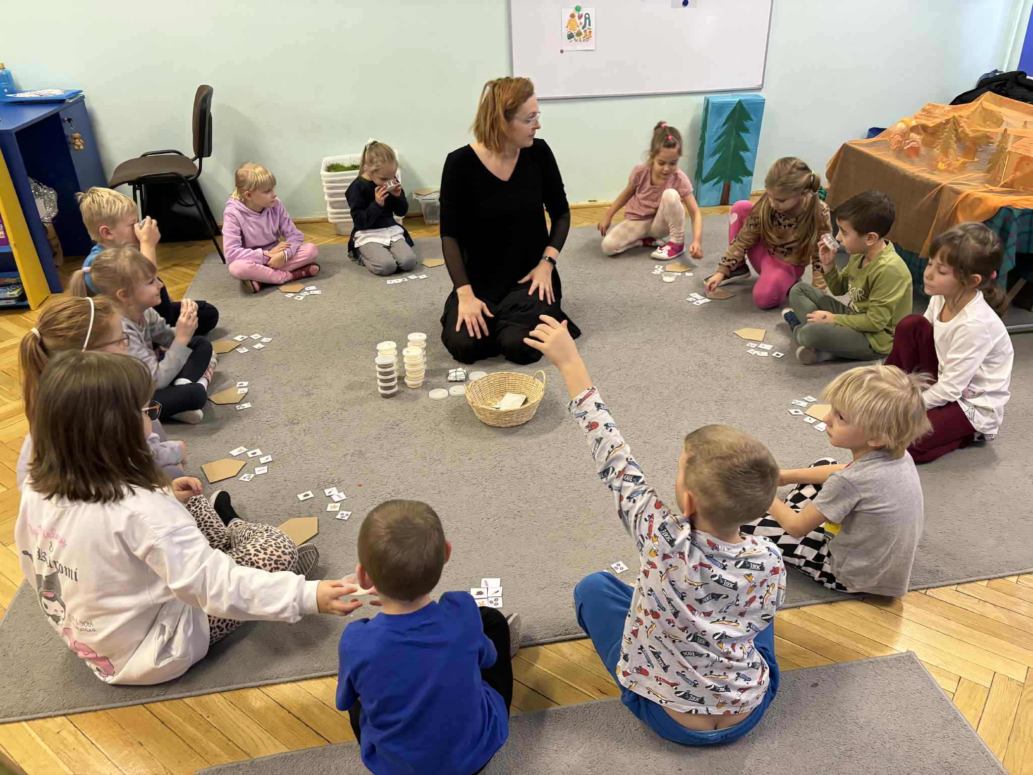 2 grudnia dzieci z grupy srebrnej i czerwonej uczestniczyły w warsztatach świątecznych, w ramach których oglądały bajkę „Jaś i Małgosia”, przechodziły po ścieżce sensorycznej wypełnionej różnorodnym materiałem przyrodniczym, celowały „siekierką w tekturowe drzewo”, rozpoznawały świąteczne zapachy zamknięte w pudełkach oraz dopasowywały klucze do odpowiednich drzwi. Elementem kończącym warsztaty było ozdobienie świątecznego domku różnymi materiałami plastycznymi. Warsztaty bardzo się wszystkim podobały , dziękujemy pani Izie za super zajęcia i duże zaangażowanie podczas ich prowadzenia.