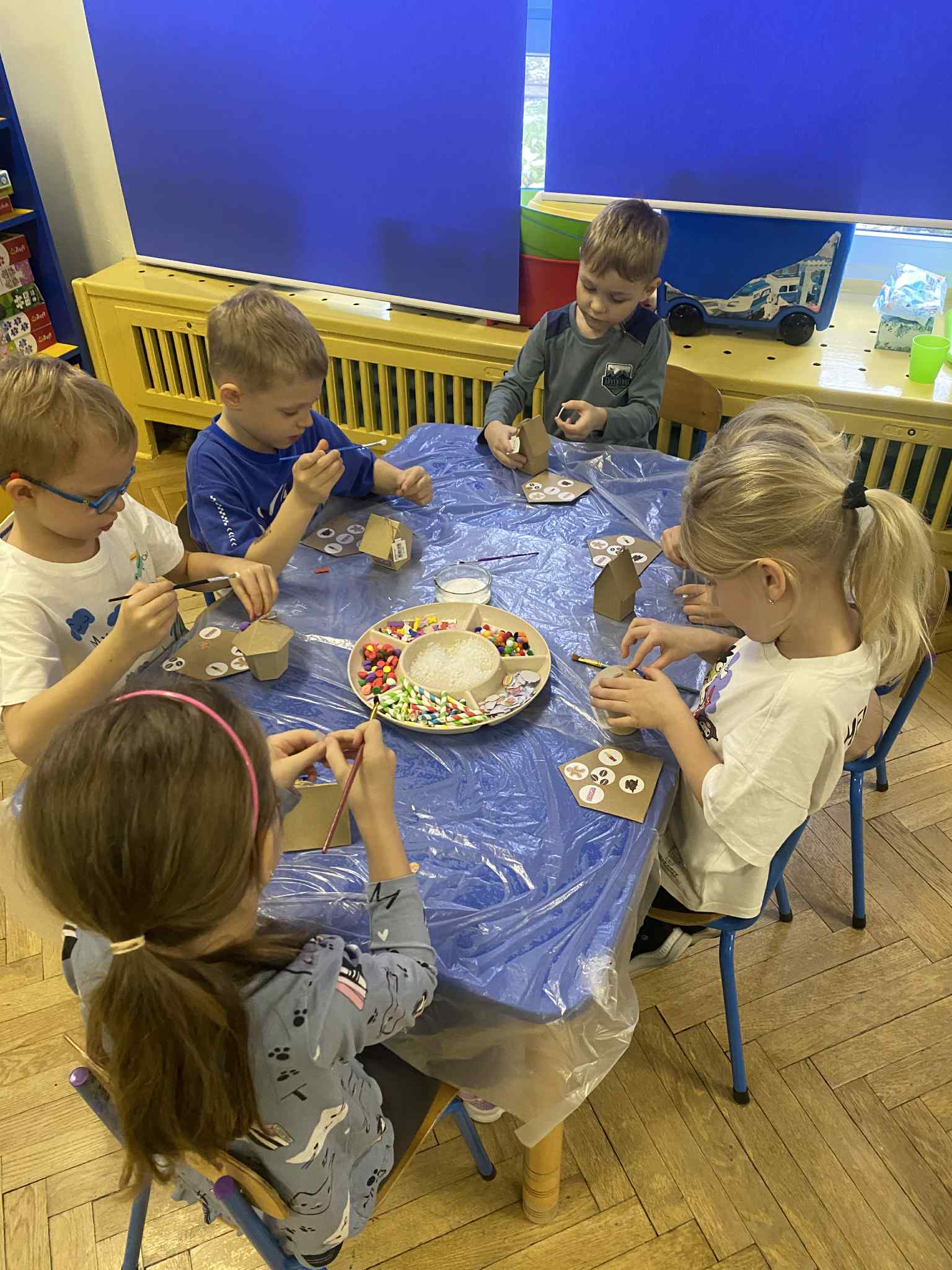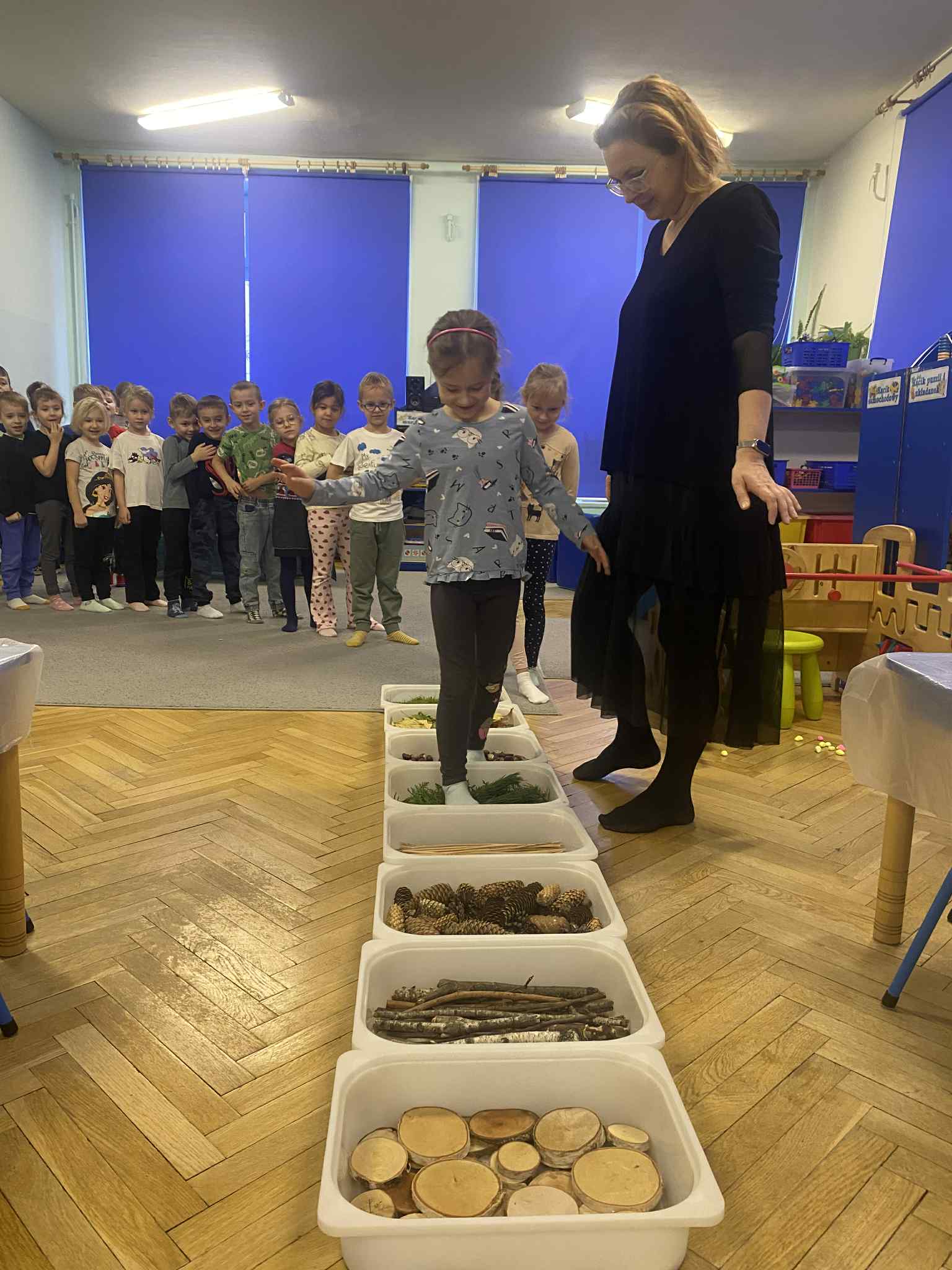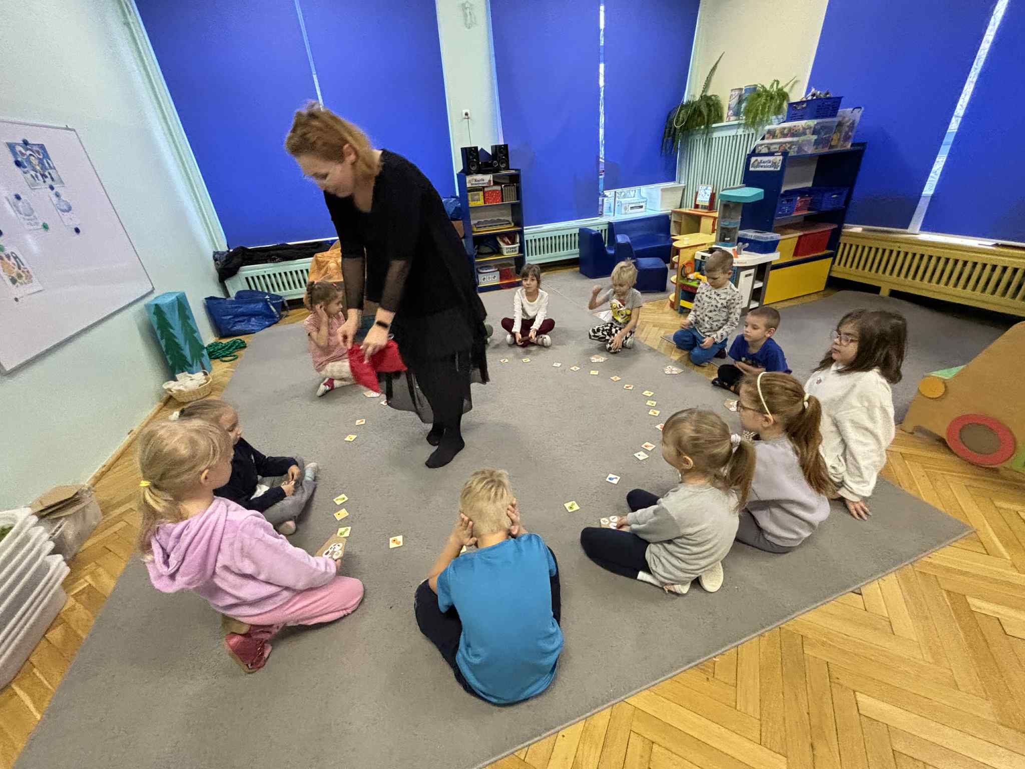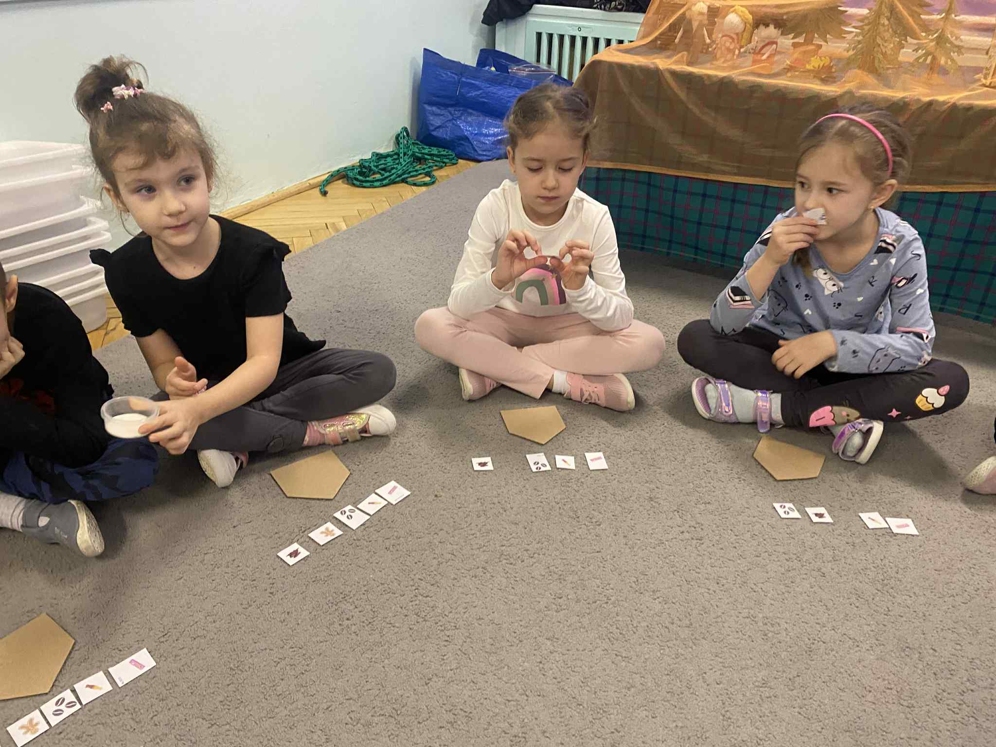 2 grudnia dzieci z grupy srebrnej i czerwonej uczestniczyły w warsztatach świątecznych, w ramach których oglądały bajkę „Jaś i Małgosia”, przechodziły po ścieżce sensorycznej wypełnionej różnorodnym materiałem przyrodniczym, celowały „siekierką w tekturowe drzewo”, rozpoznawały świąteczne zapachy zamknięte w pudełkach oraz dopasowywały klucze do odpowiednich drzwi. Elementem kończącym warsztaty było ozdobienie świątecznego domku różnymi materiałami plastycznymi. Warsztaty bardzo się wszystkim podobały , dziękujemy pani Izie za super zajęcia i duże zaangażowanie podczas ich prowadzenia.