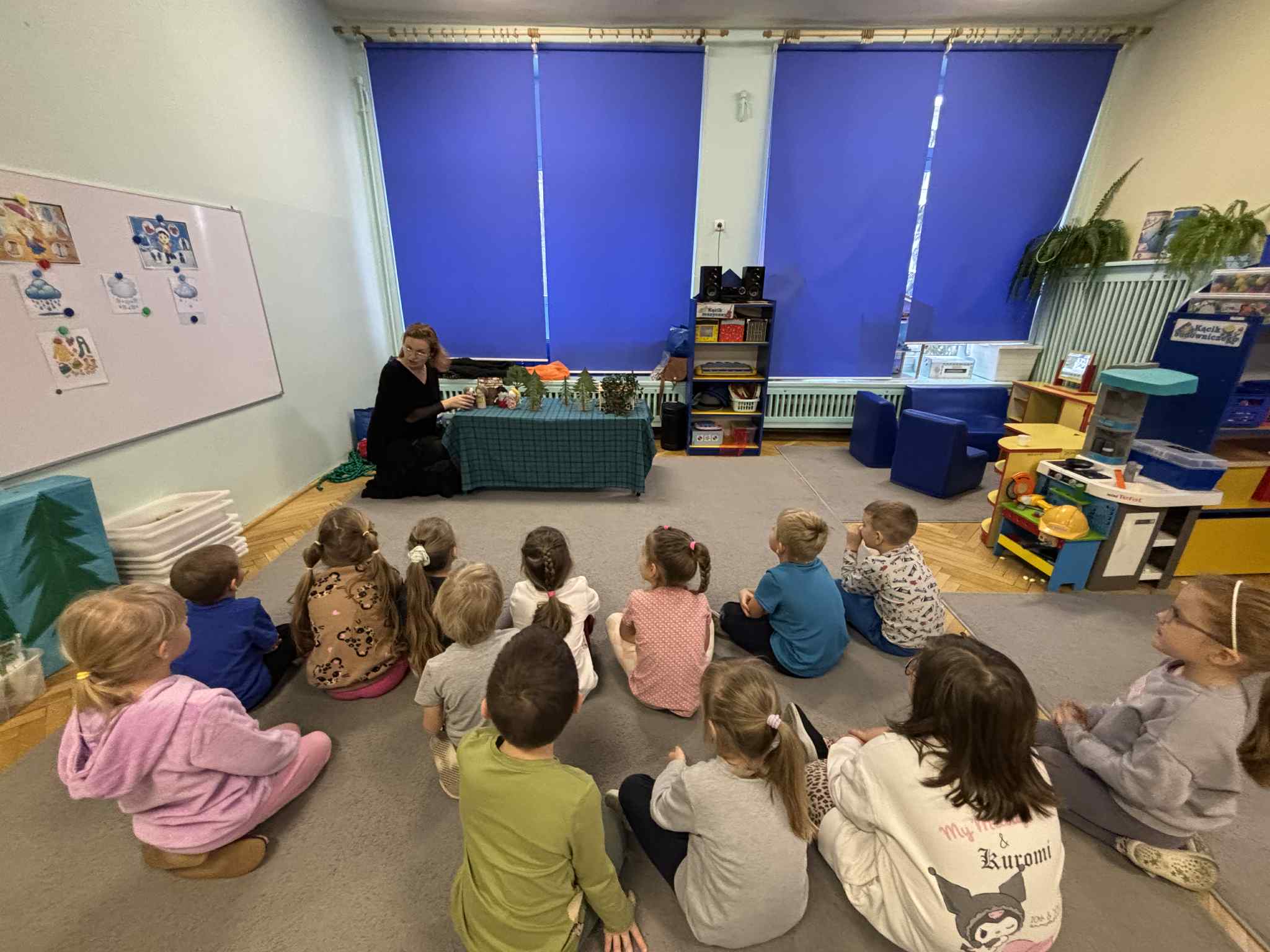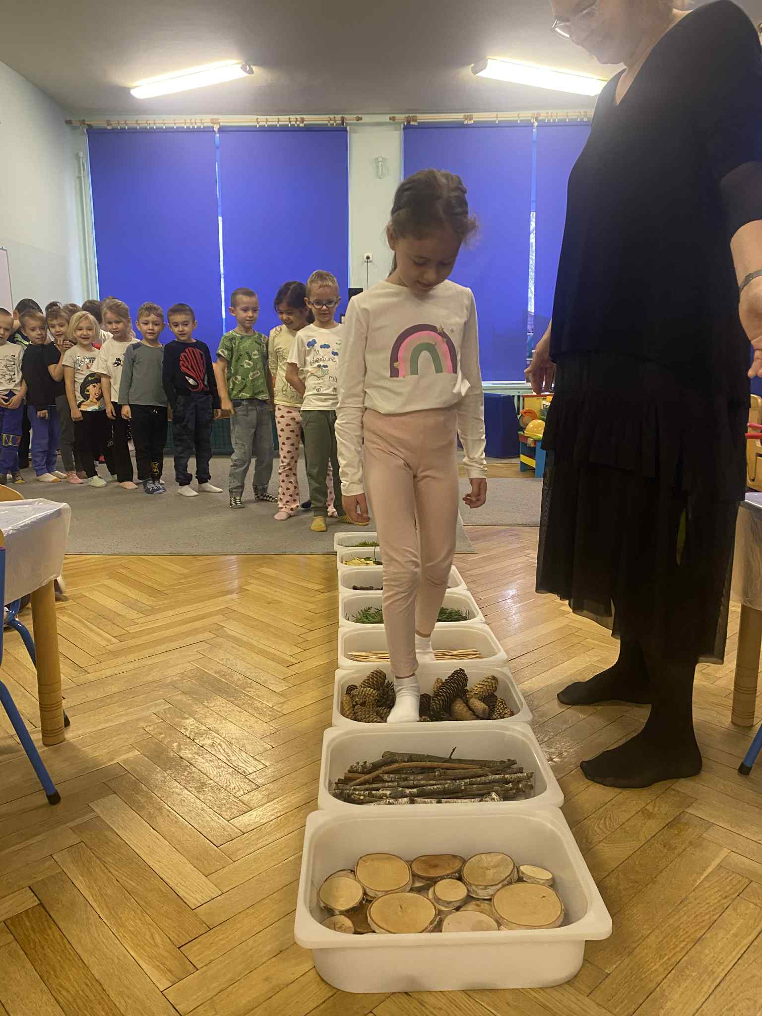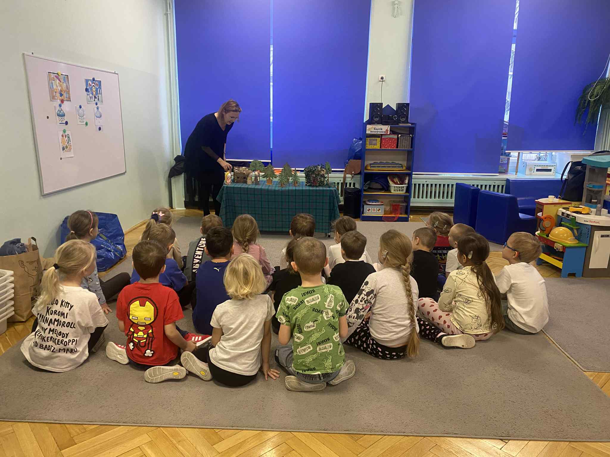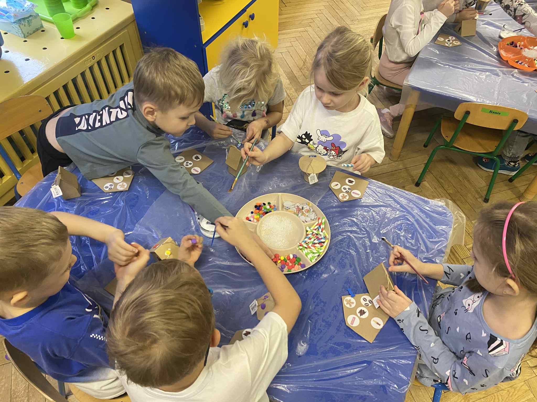2 grudnia dzieci z grupy srebrnej i czerwonej uczestniczyły w warsztatach świątecznych, w ramach których oglądały bajkę „Jaś i Małgosia”, przechodziły po ścieżce sensorycznej wypełnionej różnorodnym materiałem przyrodniczym, celowały „siekierką w tekturowe drzewo”, rozpoznawały świąteczne zapachy zamknięte w pudełkach oraz dopasowywały klucze do odpowiednich drzwi. Elementem kończącym warsztaty było ozdobienie świątecznego domku różnymi materiałami plastycznymi. Warsztaty bardzo się wszystkim podobały , dziękujemy pani Izie za super zajęcia i duże zaangażowanie podczas ich prowadzenia.