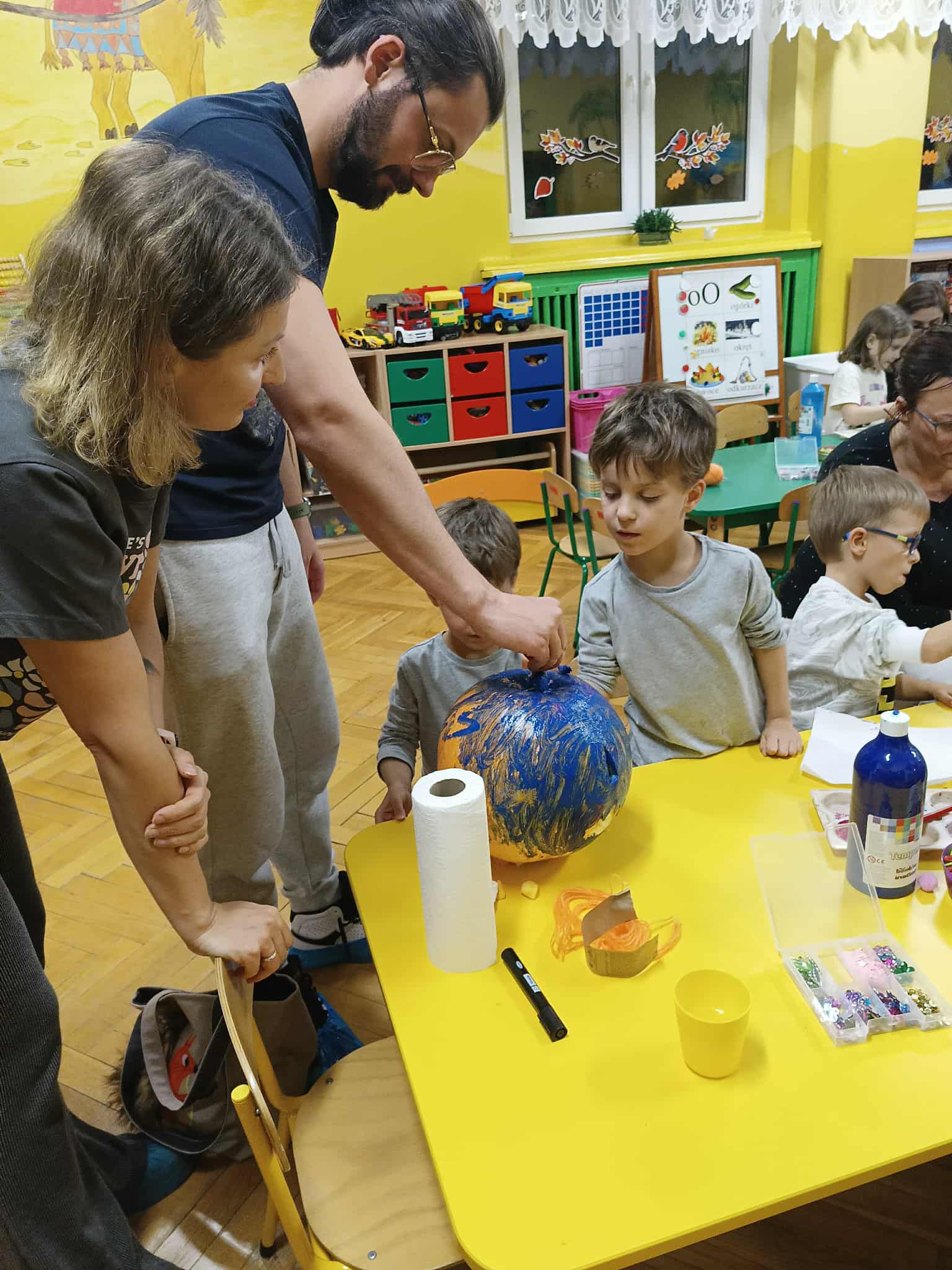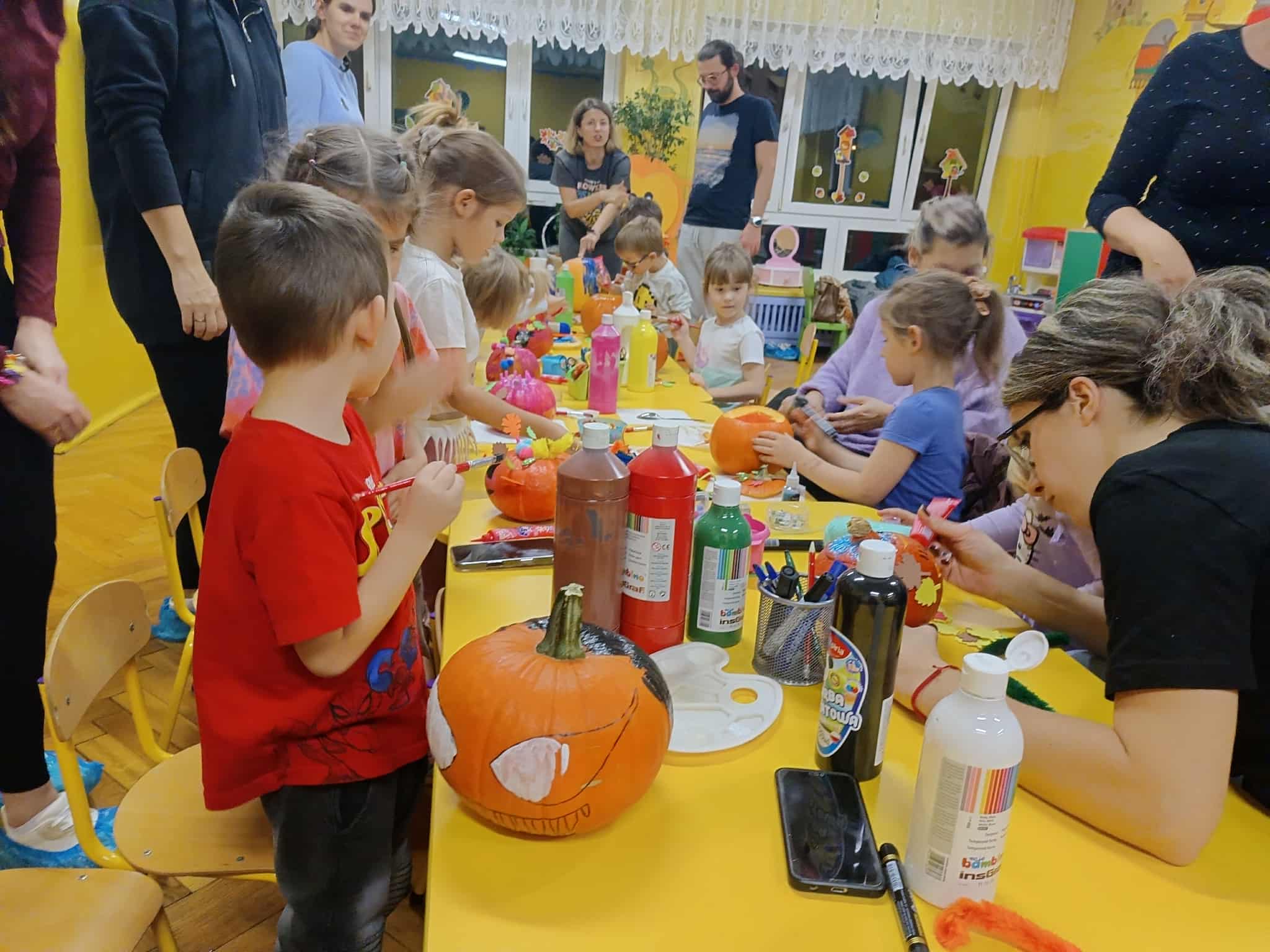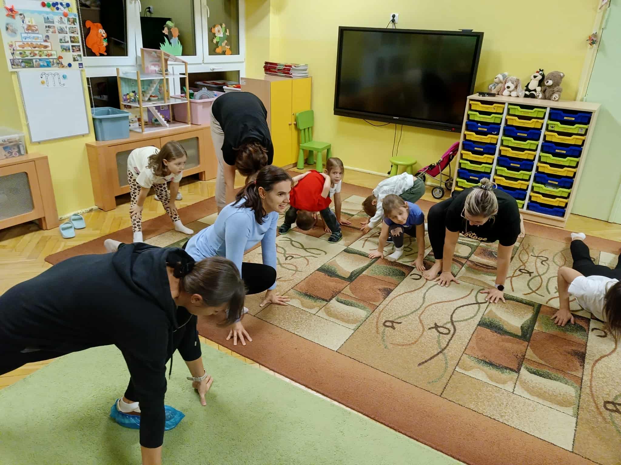 Pod koniec października w grupie żółtej odbyły się warsztaty dla rodziców. Wspólnie z dziećmi ćwiczyliśmy asany statyczne i dynamiczne, a na koniec za aktywny udział rodziców w zajęciach, w nagrodę dzieci wykonały masaż - turlając się po rodzicach. Wspólnie świetnie się bawiliśmy! Zwieńczeniem warsztatów było ozdabianie dyń, z okazji Święta Dyni. Dziękujemy za wspólnie spędzony czas.
