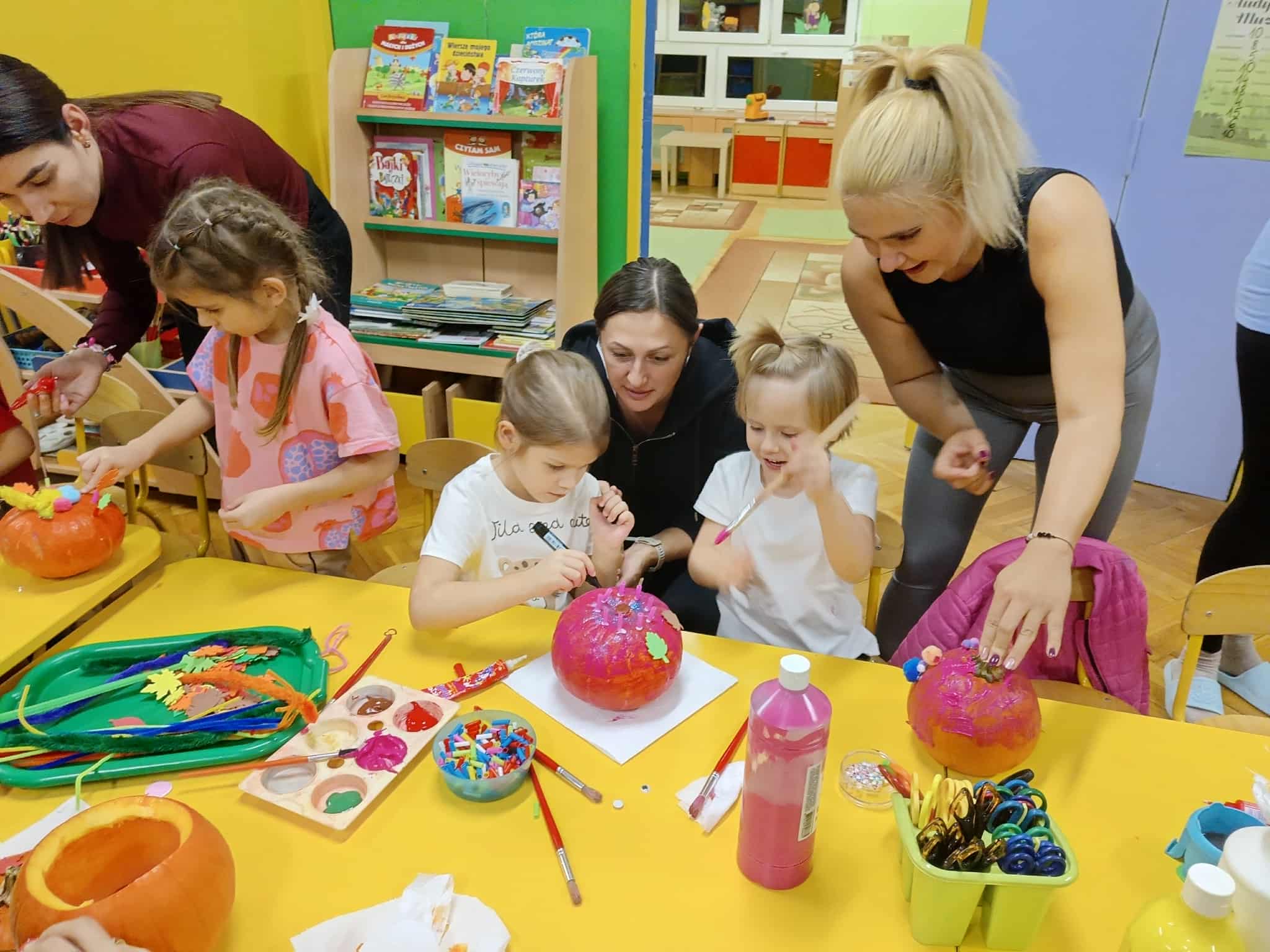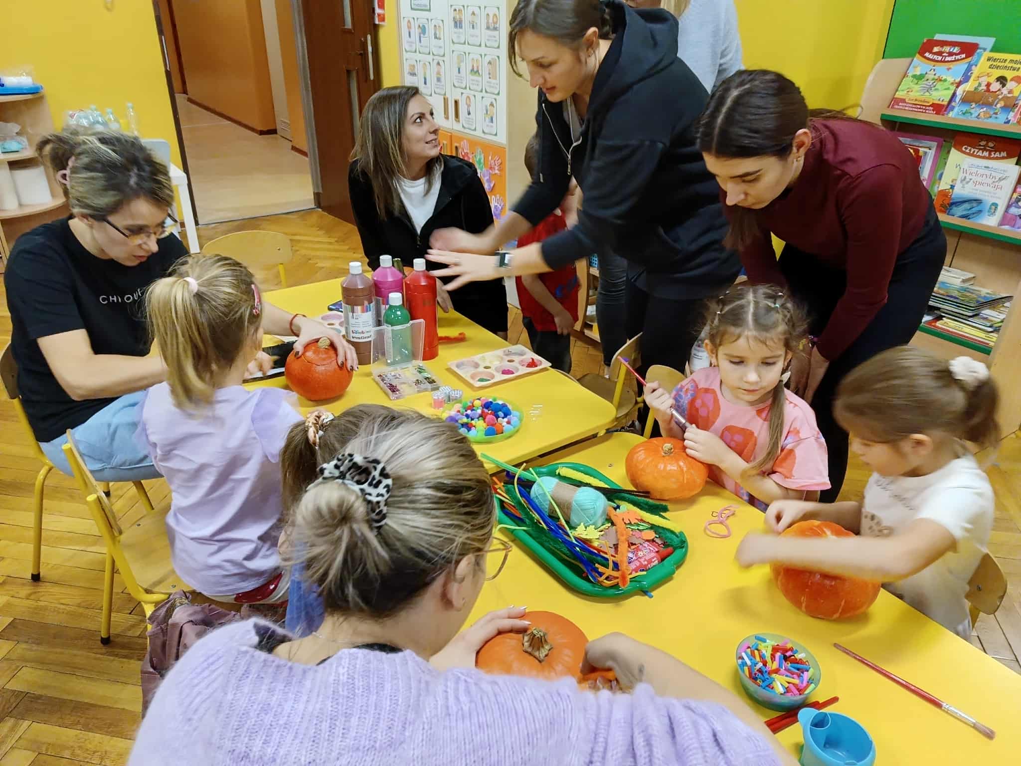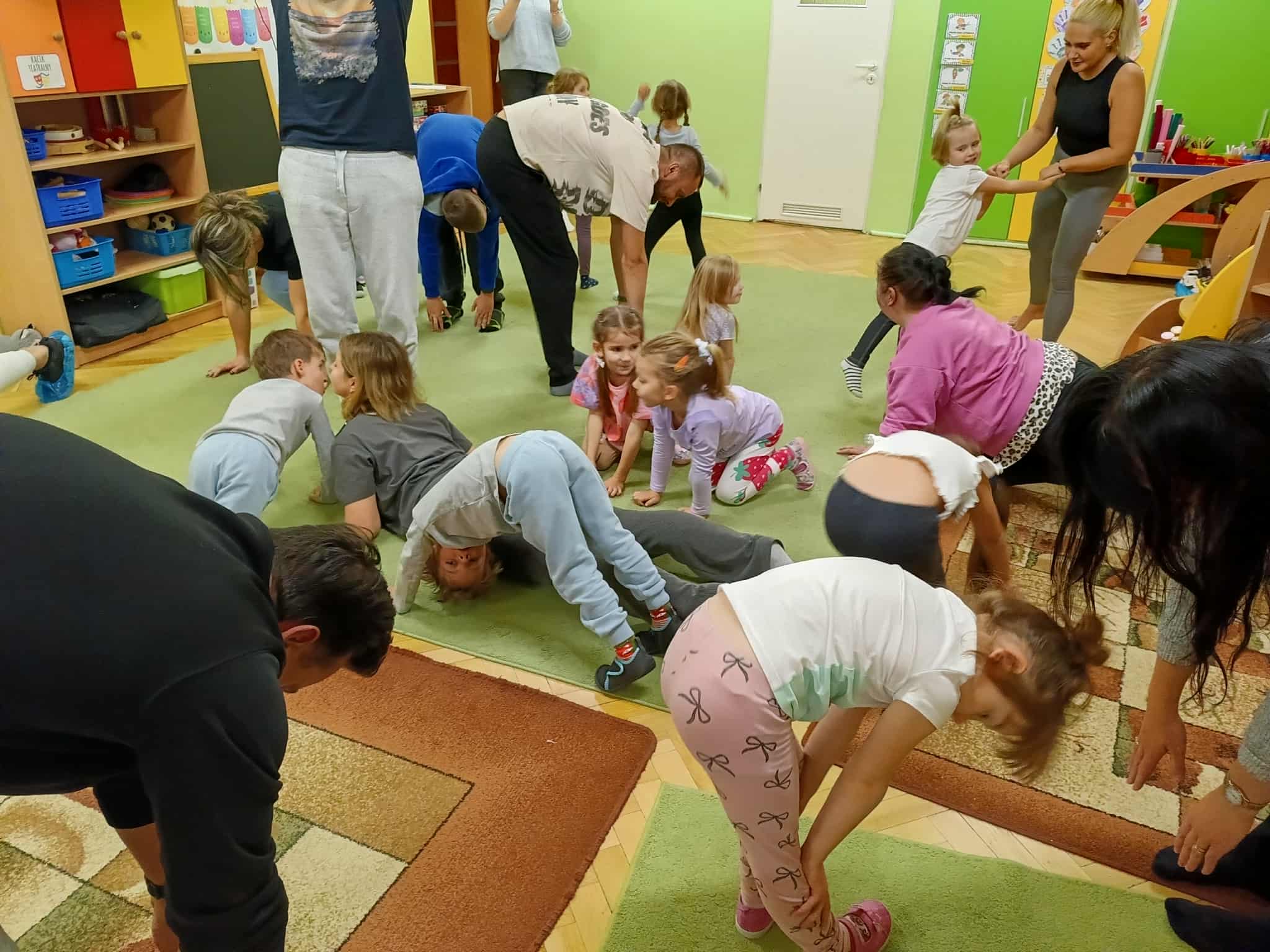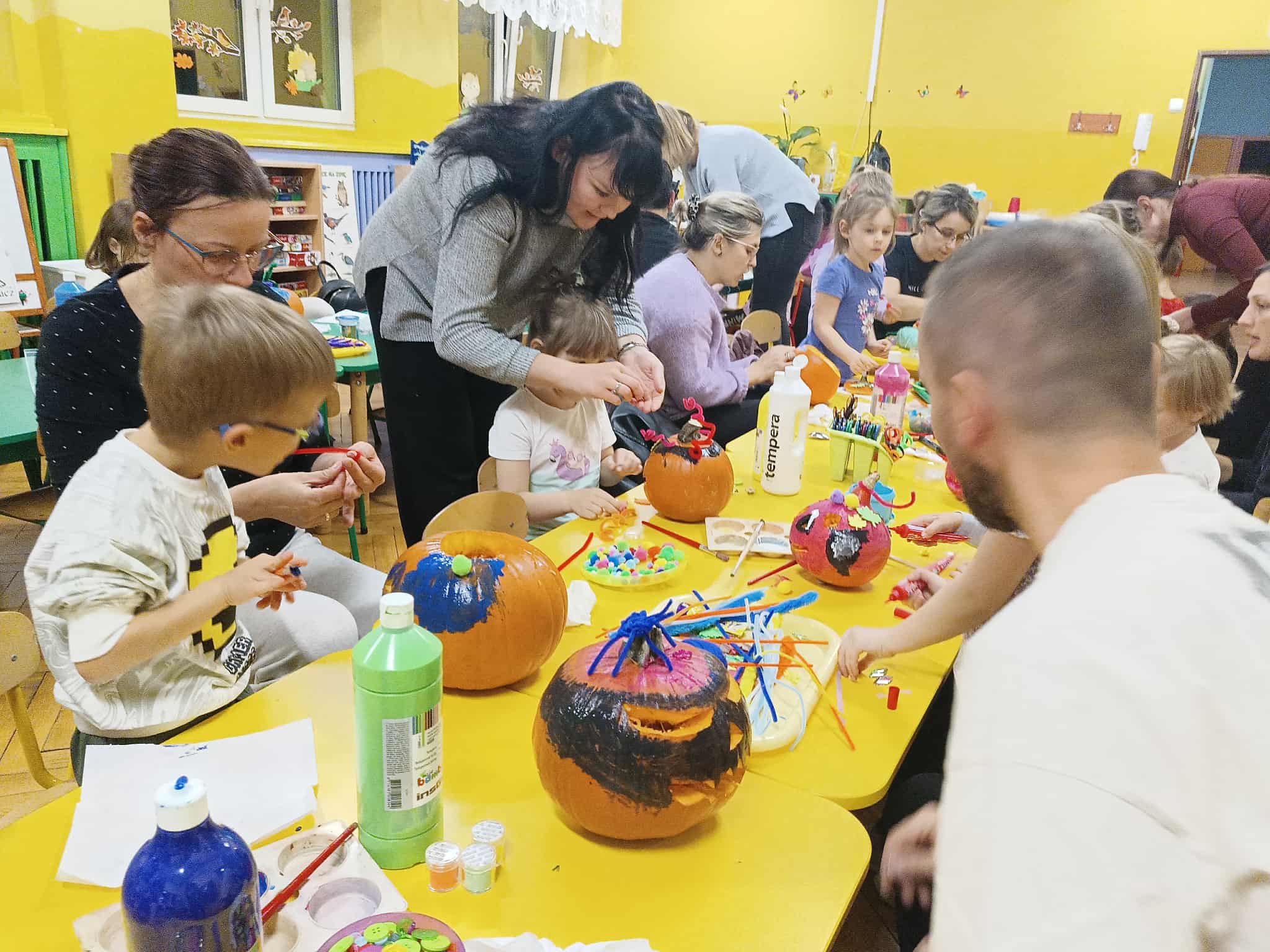 Pod koniec października w grupie żółtej odbyły się warsztaty dla rodziców. Wspólnie z dziećmi ćwiczyliśmy asany statyczne i dynamiczne, a na koniec za aktywny udział rodziców w zajęciach, w nagrodę dzieci wykonały masaż - turlając się po rodzicach. Wspólnie świetnie się bawiliśmy! Zwieńczeniem warsztatów było ozdabianie dyń, z okazji Święta Dyni. Dziękujemy za wspólnie spędzony czas.
