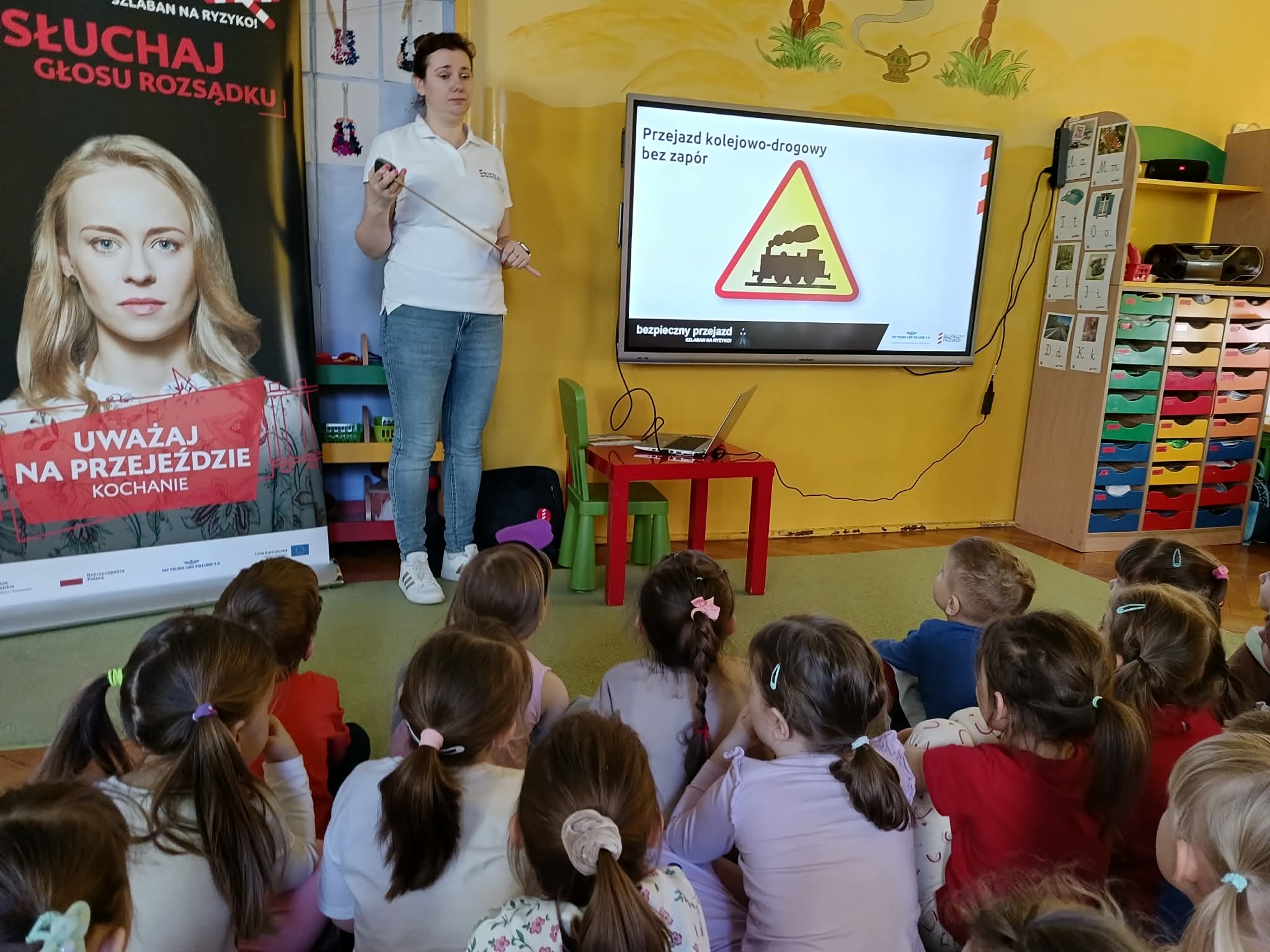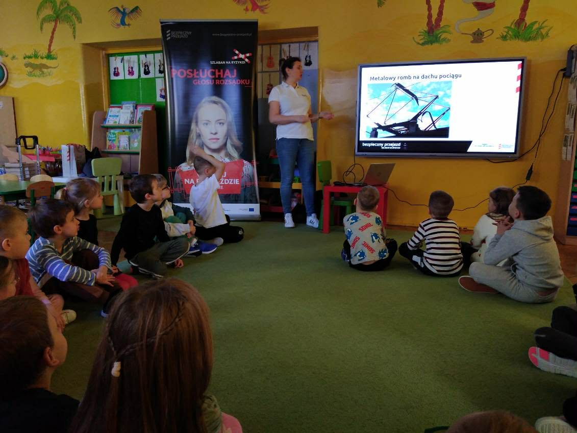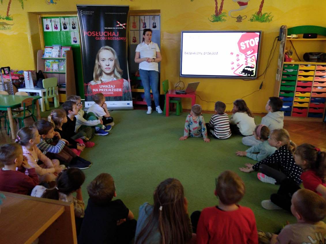 6 marca dzieci z wszystkich grup uczestniczyły w zajęciach edukacyjnych dotyczących bezpieczeństwa na przejazdach kolejowych w ramach kampanii "Bezpieczny przejazd". Dziękujemy serdecznie prowadzącej Pani Magdzie!