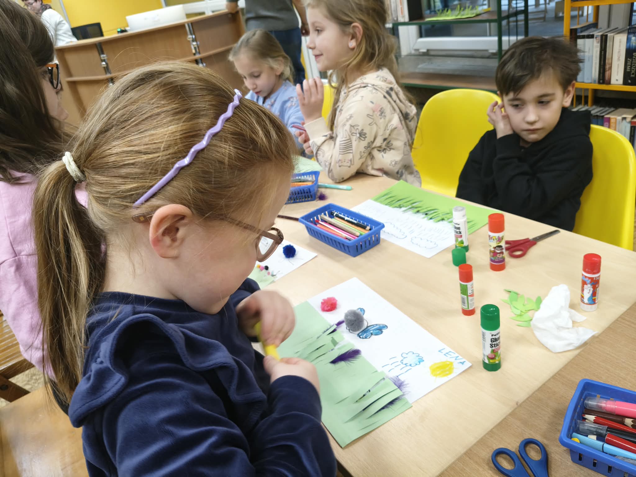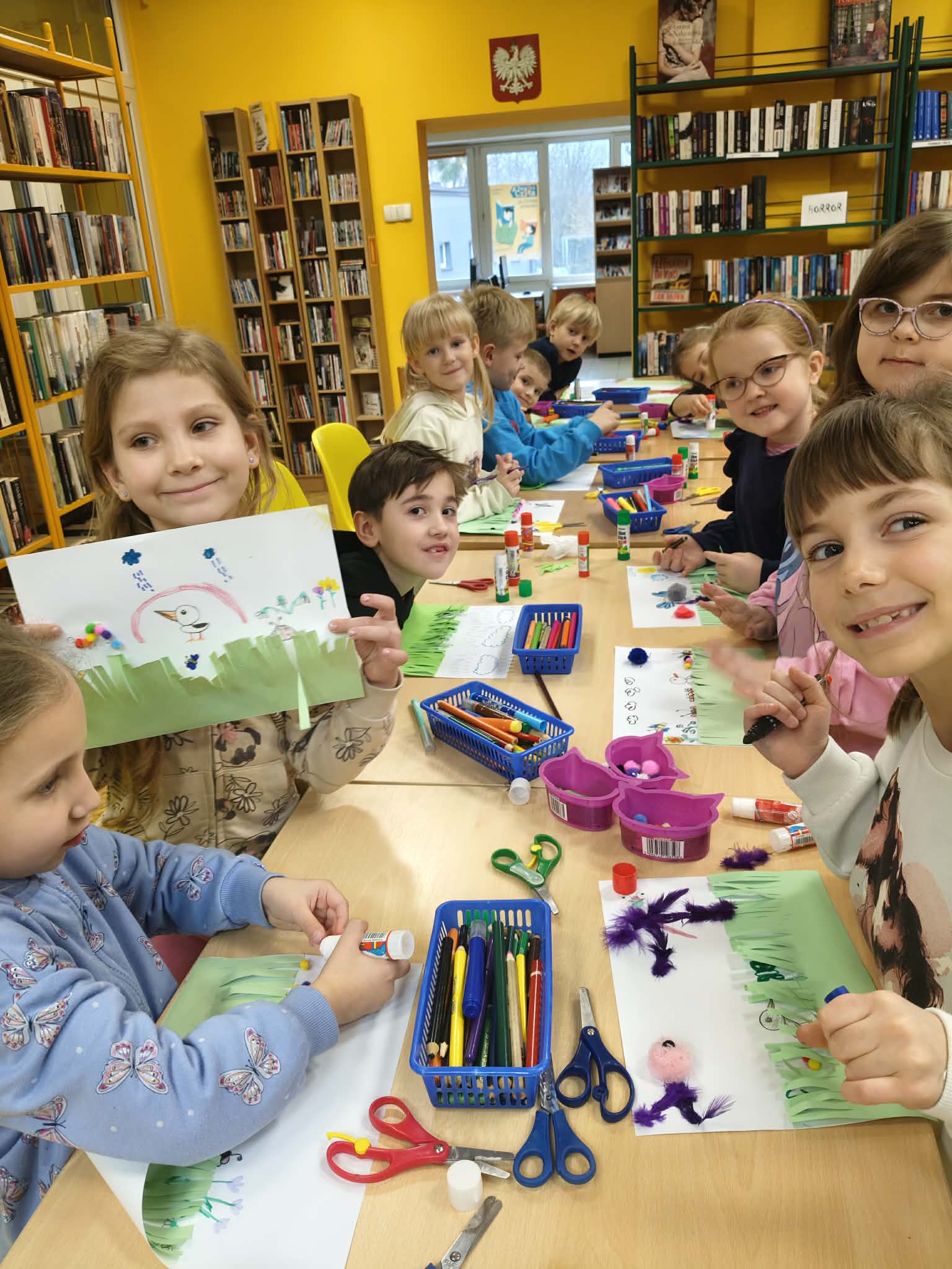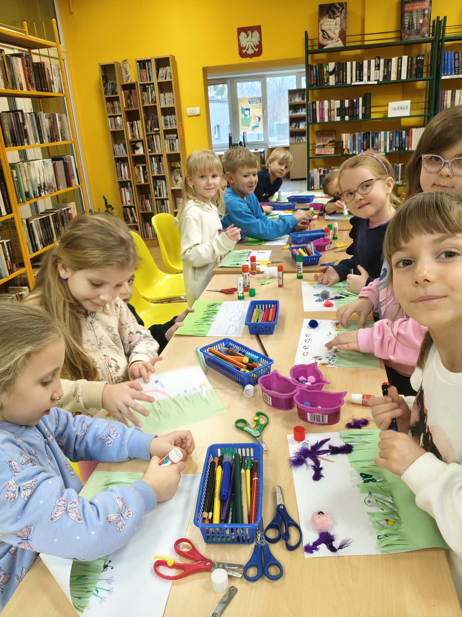 16 marca grupa srebrna uczestniczyła w zajęciach o tematyce wiosennej w bibliotece Miejskiej Fili Nr 61 przy ulicy Tatrzańskiej. Dzieci miały okazję wysłuchać książki Małgorzaty Strzałkowskiej pt. "Wiosna" oraz wykonać pracę plastyczną pt. "Co kryje wiosenna łąka?".